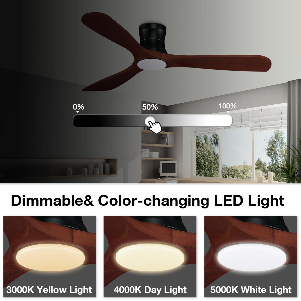 Hoenofly 52 Smart Wood Flush Mount Ceiling Fans With Lights Remote,Quiet Dc Motor,Outdoor Indoor Low Profile Ceiling Fan,Voic