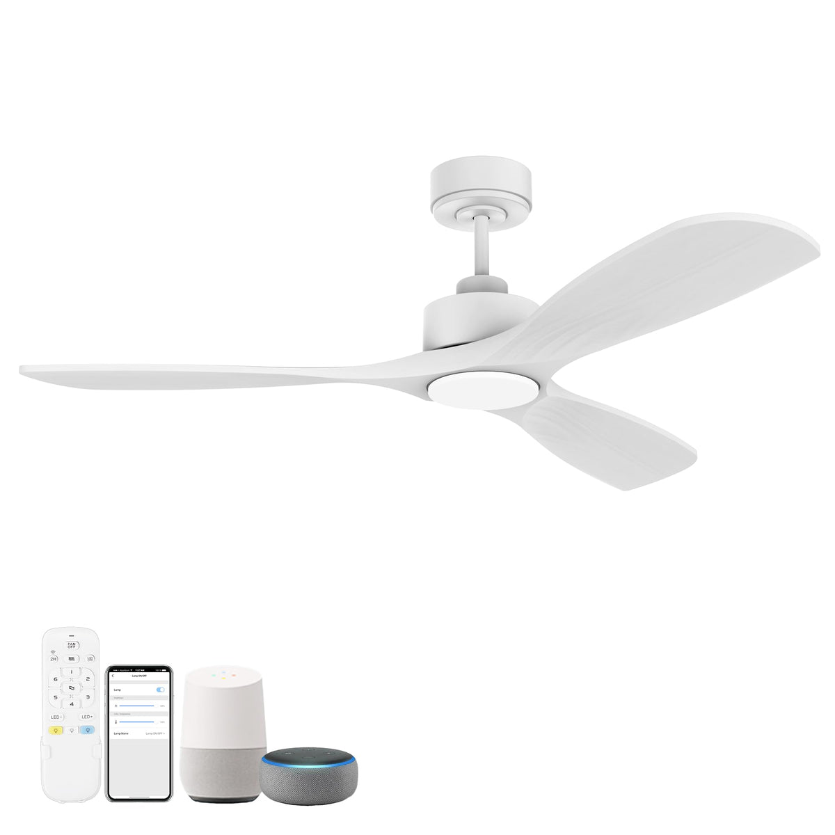 Transform Your Living Space With Our Cutting-Edge Smart Ceiling Fan With Lights And Remote Control. Engineered For Modern Convenience And Style, This 52Inch Slope Mounted Ceiling Fan In Solid Wood With White Wood Color Provides Both Functionality And Aesthetics, Suitable For Indoor Outdoor Places, Like Bedroom,Living Room,Kitchen,Patios And Porch. Stay In Total Control With Our Integrated Smart Technology. Compatible With Wifi, Alexa Google Assistant And App, You Can Adjust Fan Speeds And Lighting Effortlessly With Simple Voice Commands Or Through The Intuitive Smartphone App. Plus, Even If Your Wifi Connection Is Down, You Can Still Enjoy Full Control Thanks To The Included Remote Control. Illuminate Your Home With Dimmable And Color-Changing Led Lighting. Installation Is Easy To Do. The Slope Mounted Design Suit For Flush Mounted Or Vaulted/Sloped Mounted At Up To A 15 Angle. Plus, With Its Whisper-Quiet Dc Motor, You Can Enjoy A Powerful Airflow Without The Distraction Of Noise, Perfect For Light Sleepers. Upgrade Your Home Today With The Ultimate Combination Of Comfort, Convenience, And Style. Add Our Smart Ceiling Fan With Lights To Your Cart Now And Experience The Future Of Home Living.