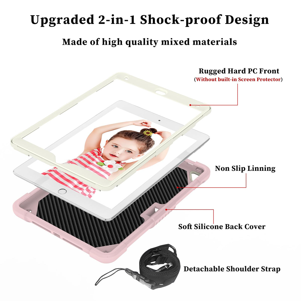 Hogenl For Ipad 9Th 8Th 7Th Generation Case For Kids Girls With Pencil Holder,For Ipad 10.2 Case With Butterfly Stand Shoulder S