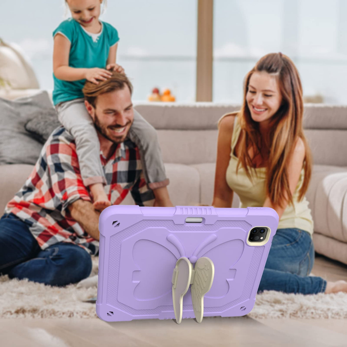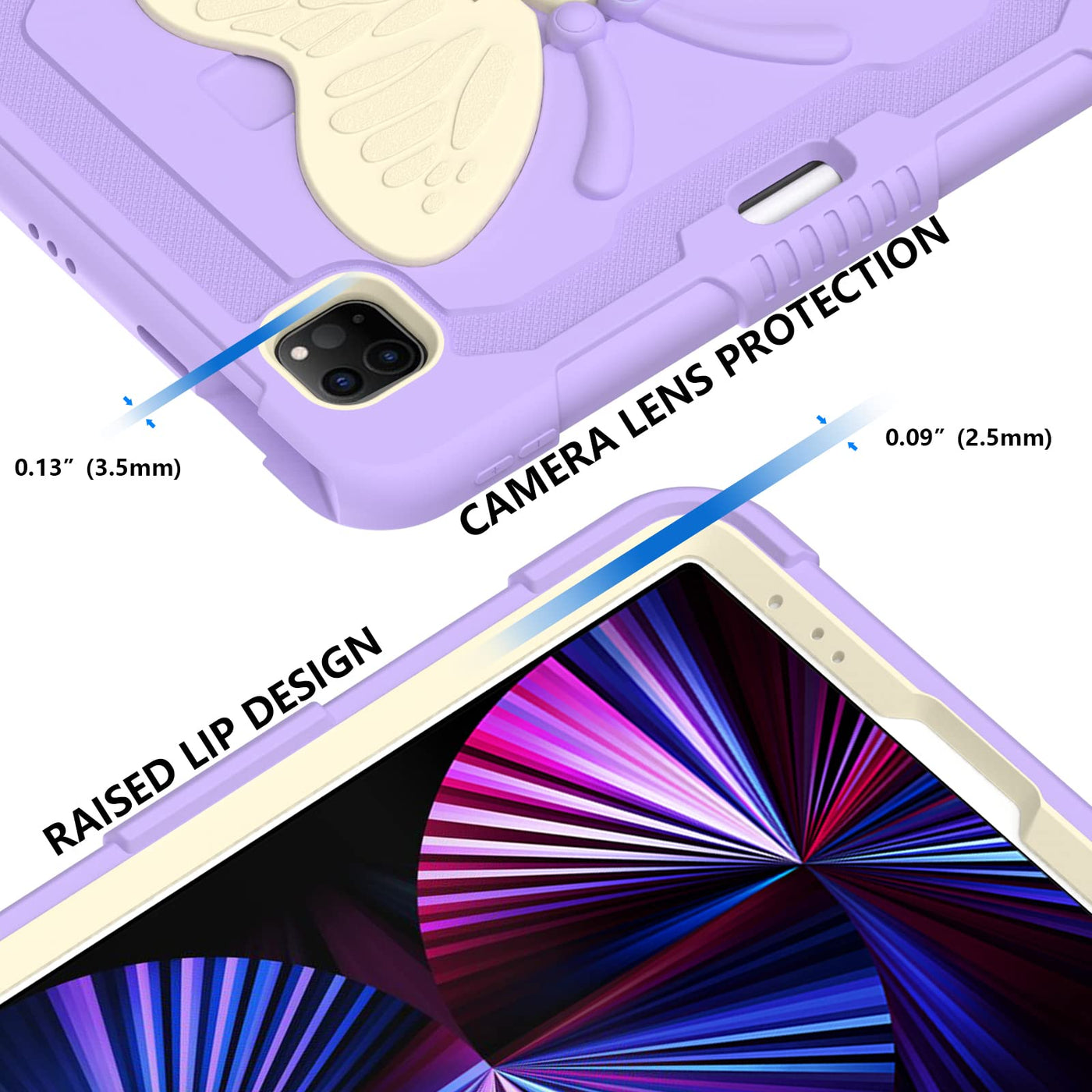 Hogenl For Ipad Pro 11 Inch Case For Kids Girl With Pencil Holder, For Ipad Air 5Th/4Th Generation Case 10.9'' With Butterfly Stand Shoulder Strap Protective Cover For Pro 11 4Th/3Rd/2Nd/1St, Purple