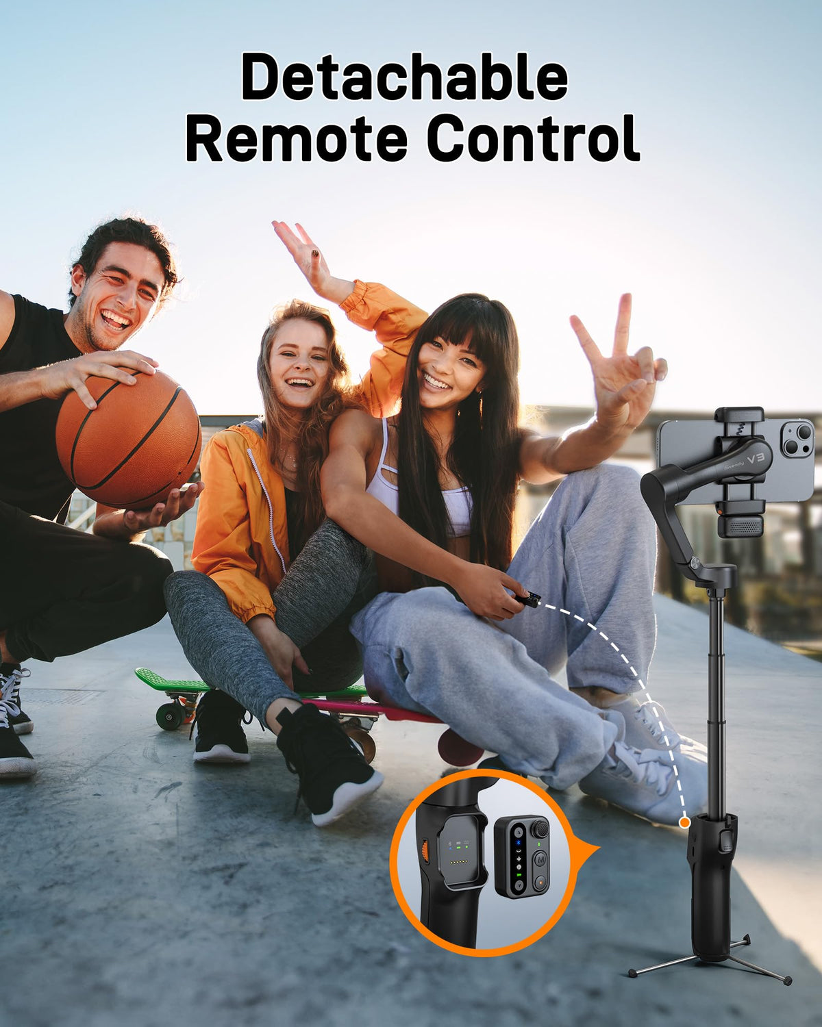 Hohem Isteady V3 Gimbal Stabilizer For Iphone, 3-Axis Phone Gimbal, Magnetic Ai Tracker, Built-In Extendable Rod & Tripod, Detac