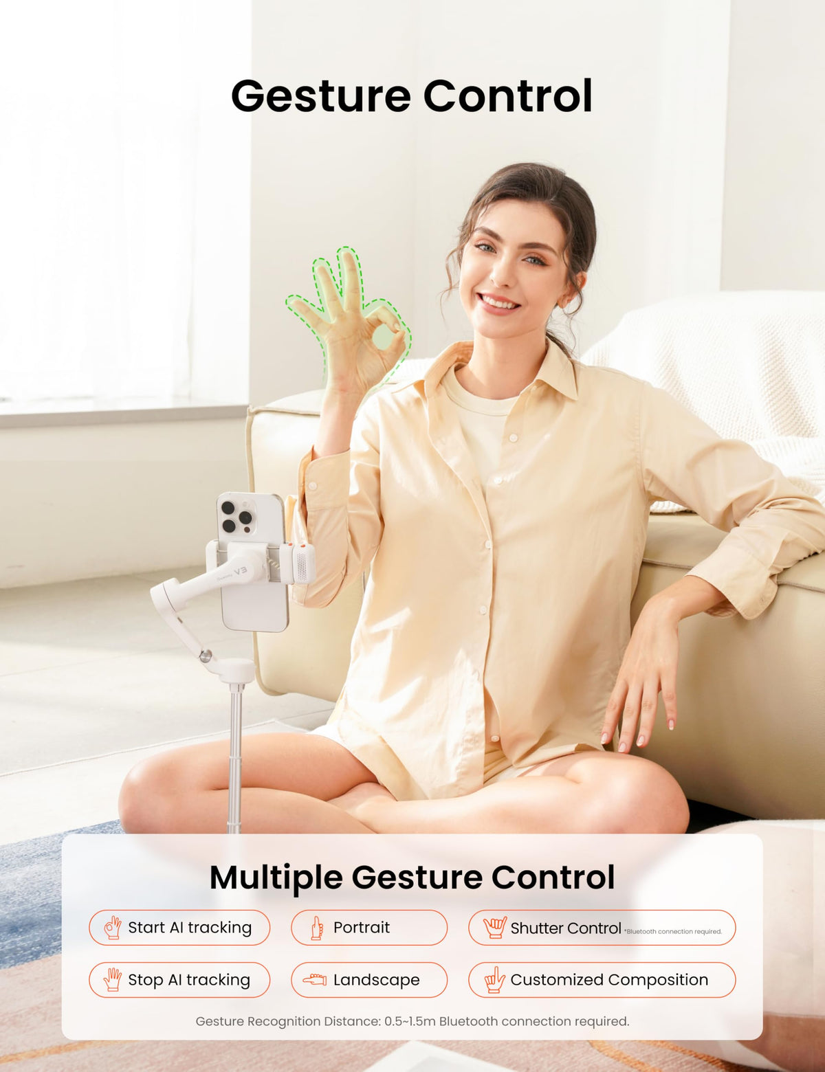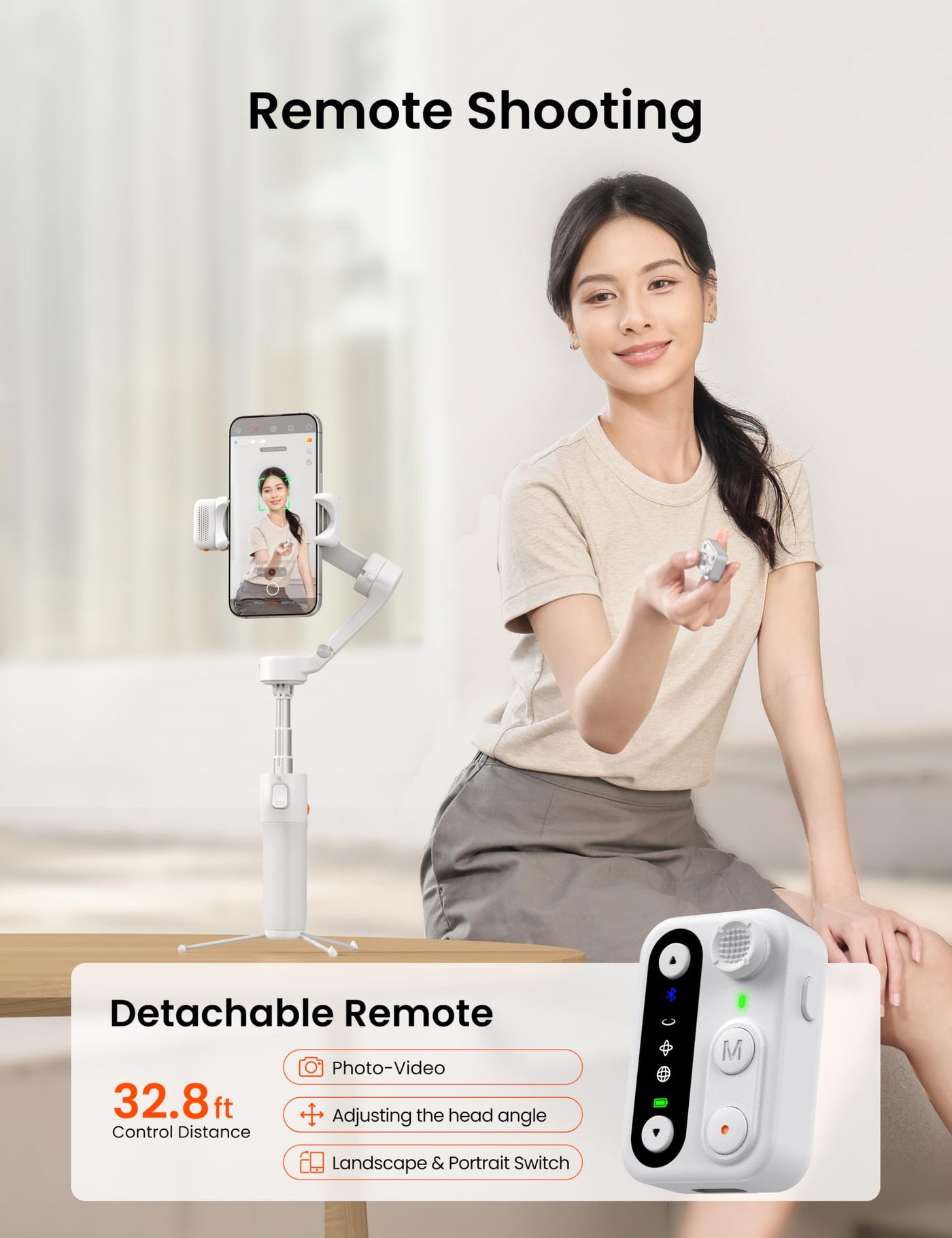 The Hohem Smartphone Gimbal Is Equipped With Isteady 8.0 Revolutionary Stabilization Technology, Ensuring The Images Steadier And Smoother. The Magnetic Ai Tracking Sensor Doesnt Need To Be Connected To An App And Can Be Turned On Or Off Using Gesture Control. The Detachable Remote Control Design Allows You To Complete The Shooting Independently Without The Help Of Others. The Built-In Extension Pole And Tripod Can Ensure Everyone Is In The Picture When Taking Group Photos.