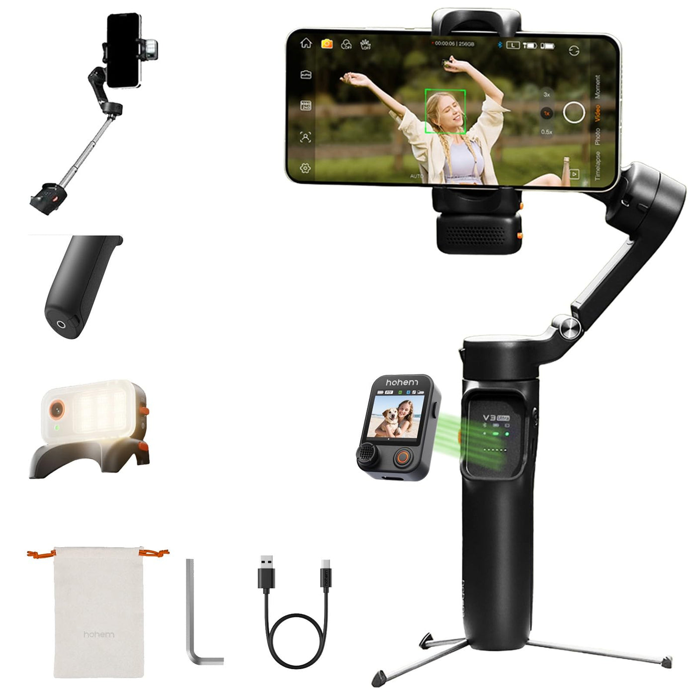 Hohem Isteady V3 Ultra Gimbal Stabilizer For Iphone ,Phone Gimbal With Ai Tracking,Built-In Extendable Rod &Amp; Tripod,Fill Light ,Detachable Remote Control,Stabilizer For Video Recording,Tiktok (Black) Through The Hohem Joy App, You Can Unlock Even More Creative Features: Gesture Control: Effortlessly Operate Your Camera From A Distance. Master Shot Templates: Instantly Create Stunning Effects Like Hitchcock-Style Zooms, Dreamy Panoramas, And Cinematic Zooms. Gesture Control: Transform Your Stabilizer Into A Wireless Controller For More Natural Camera Movements. Package Contents: Hohem Isteady V3 Ultra Stabilizer 1 Tripod 1 Charging Cable 1 Carrying Case 1 User Manual 1
