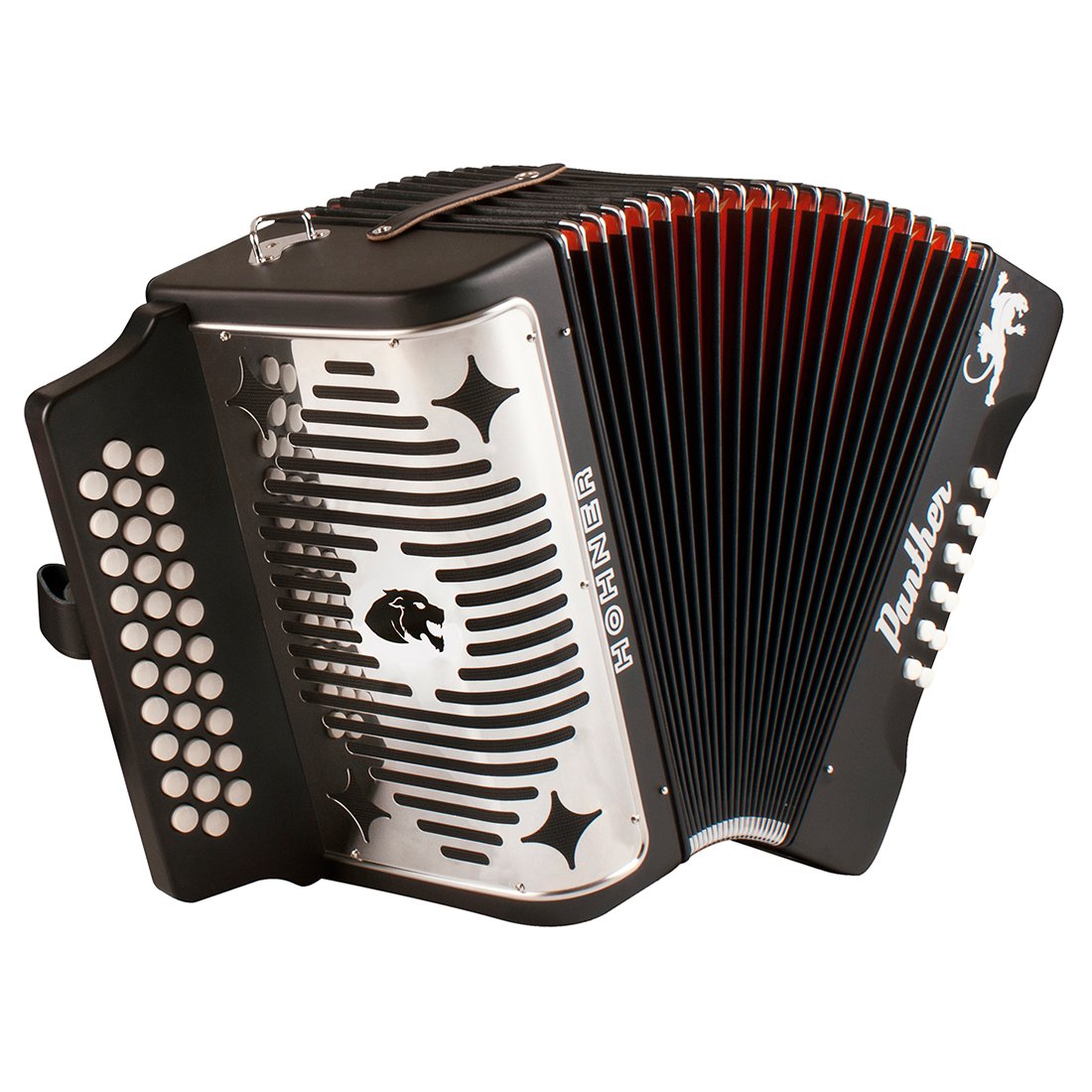 Maybe This Is The Most Intuitive Form Of Music Making: To Pick Up An Instrument And Simply Start To Play It. Where Is Which Note? One Learns This In Short Time By Heart - With These Instruments, One Does Not Think About Music, One Simply Plays It! Hohners Panther Is Its Most Affordable 3 Row Accordion. It Shares Many Of The Same Quality Features As Other Hohner Three-Row Diatonic Accordions And Has Double Strap Brackets. Features: Treble Buttons: 31 (3 Rows) Bass/Chord Buttons: 12 Treble Reeds: 2 Sets Key Combination: Fbe Color: Painted Matte Black Weight: 9 Lbs. Size: 7.5 Deep By 12 High