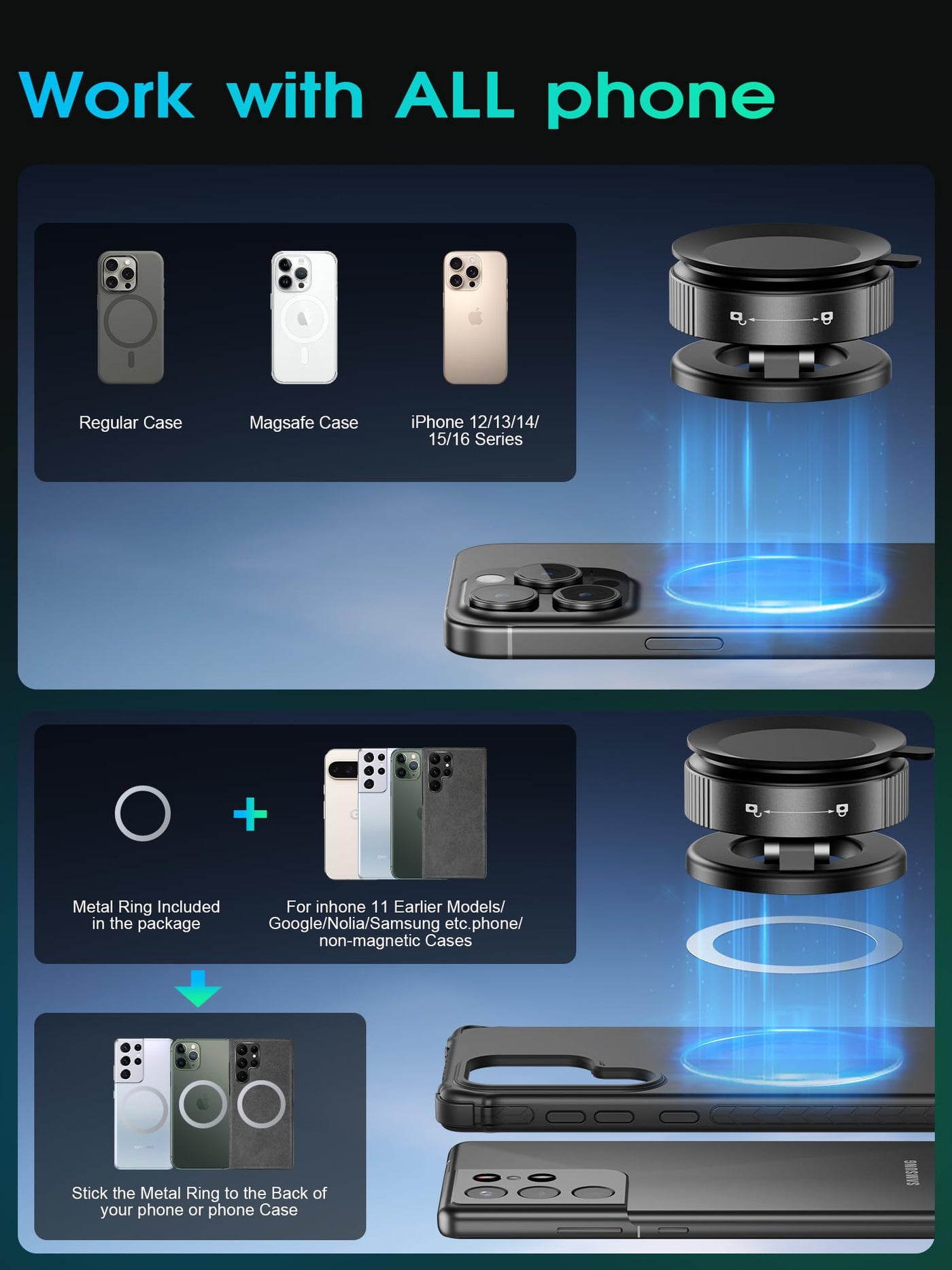 Hohosb Phone Holders For Your Car,Upgraded Vacuum Magnetic Phone Holder Stand For Magsafe,360 Rotatable Zinc Alloy Suction Cup P