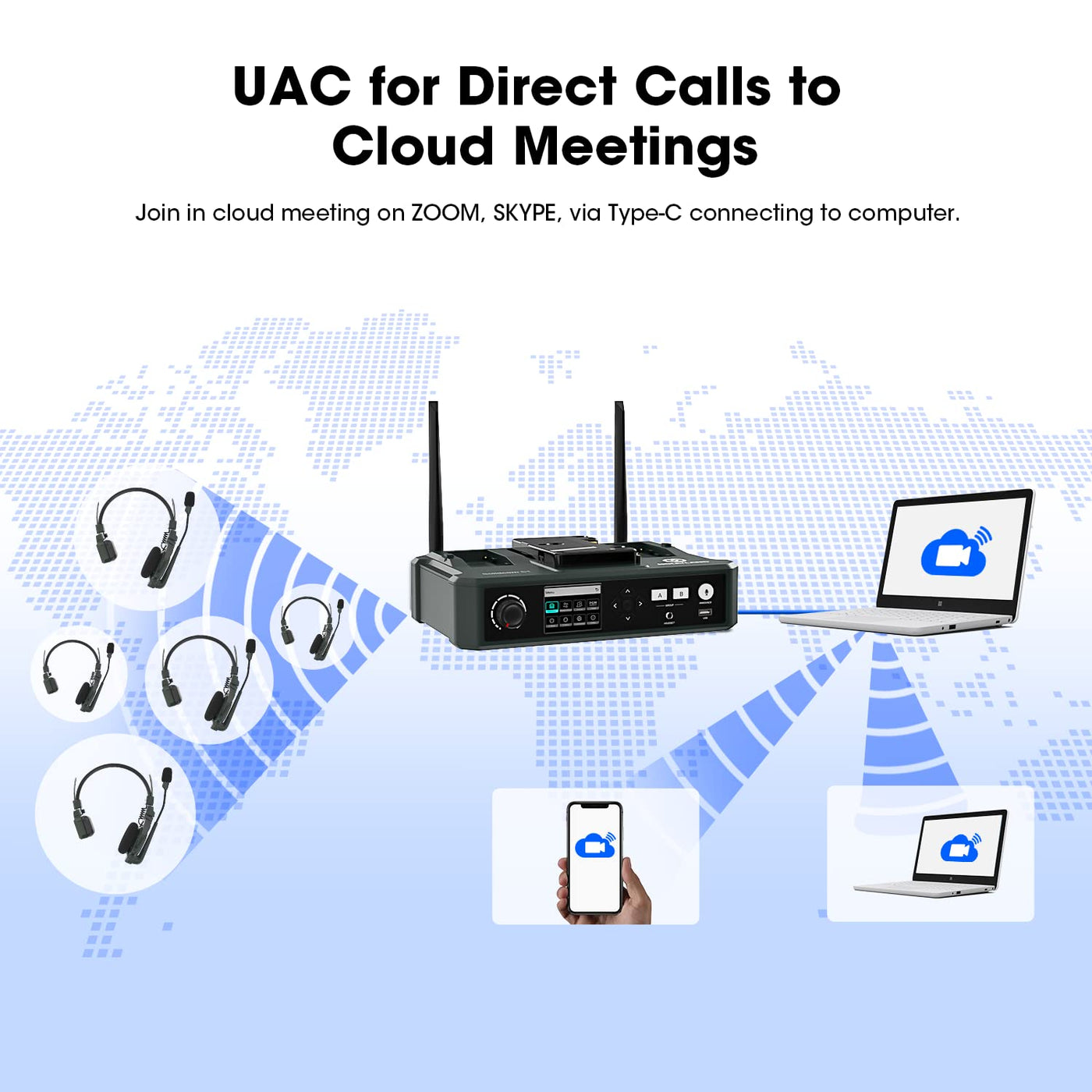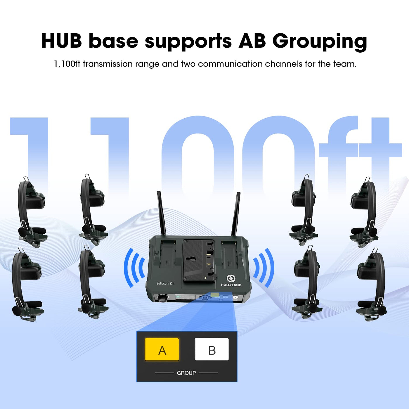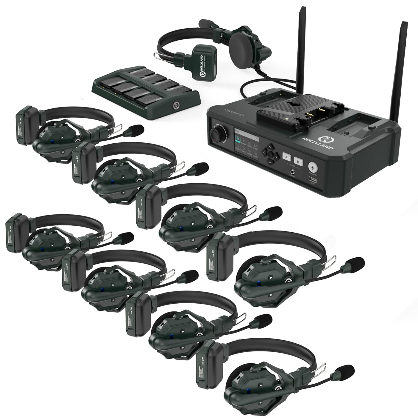 Hollyland Solidcom C1 9 Person Wireless Headset Intercom System With Base Station & 9 Headsets, 1.9Ghz Full Duplex Team Communic
