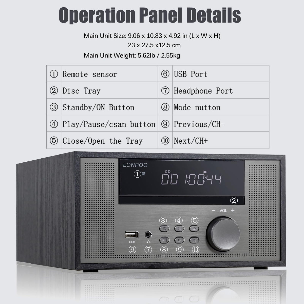 Home Cd Stereo Shelf System,100W Hi Fi Bookshelf Speskers System (Cd Player, Fm Radio, Wireless Bluetooth, Usb Playback, Aux, He