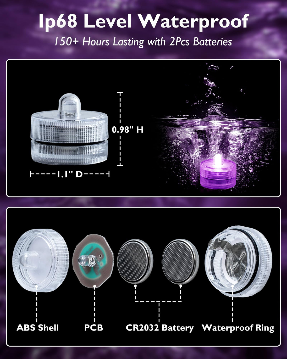 Homemory 12Pcs Mini Submersible Led Lights, Waterproof Small Tealight Candles,Battery Operated Underwater Color Changing Efx Light For Vase,Pool Pond,Halloween Lantern Decor