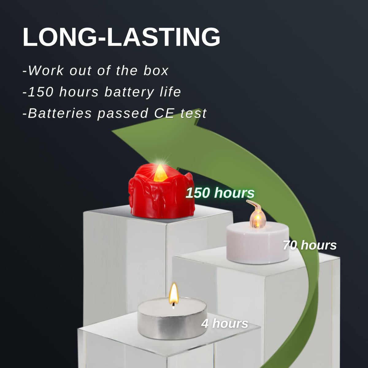 Homemory 24-Pack Melting Red Candles Battery Operated Tea Lights, Halloween Candle Red Tea Lights, Flameless Flickering Red Candles, Ideal For Halloween Holiday Decor, Theme Party, Dia 1-2/5'' X H 1-1/4''