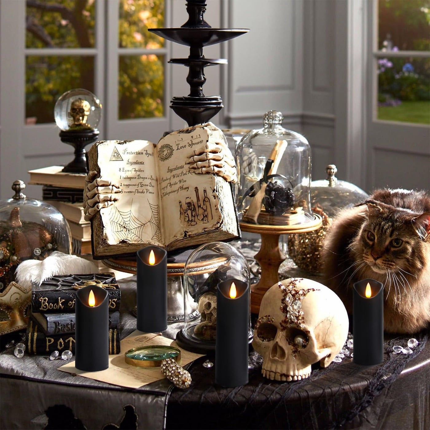 Homemory Black Flameless Candles, Halloween Candles, Battery Operated Candles, Led Pillar Candles With Remote Control And Timers