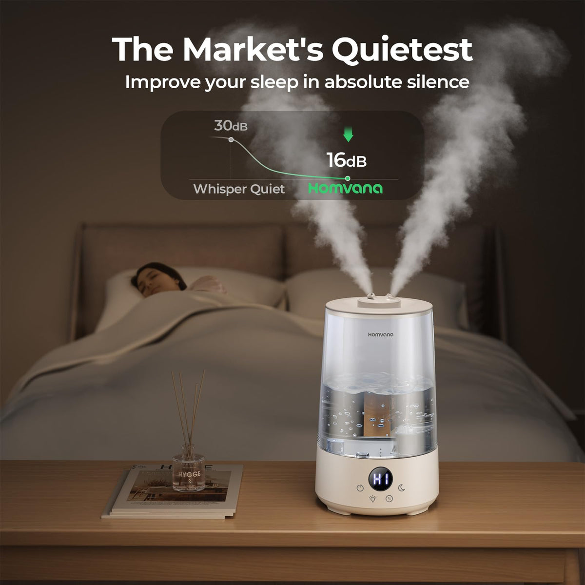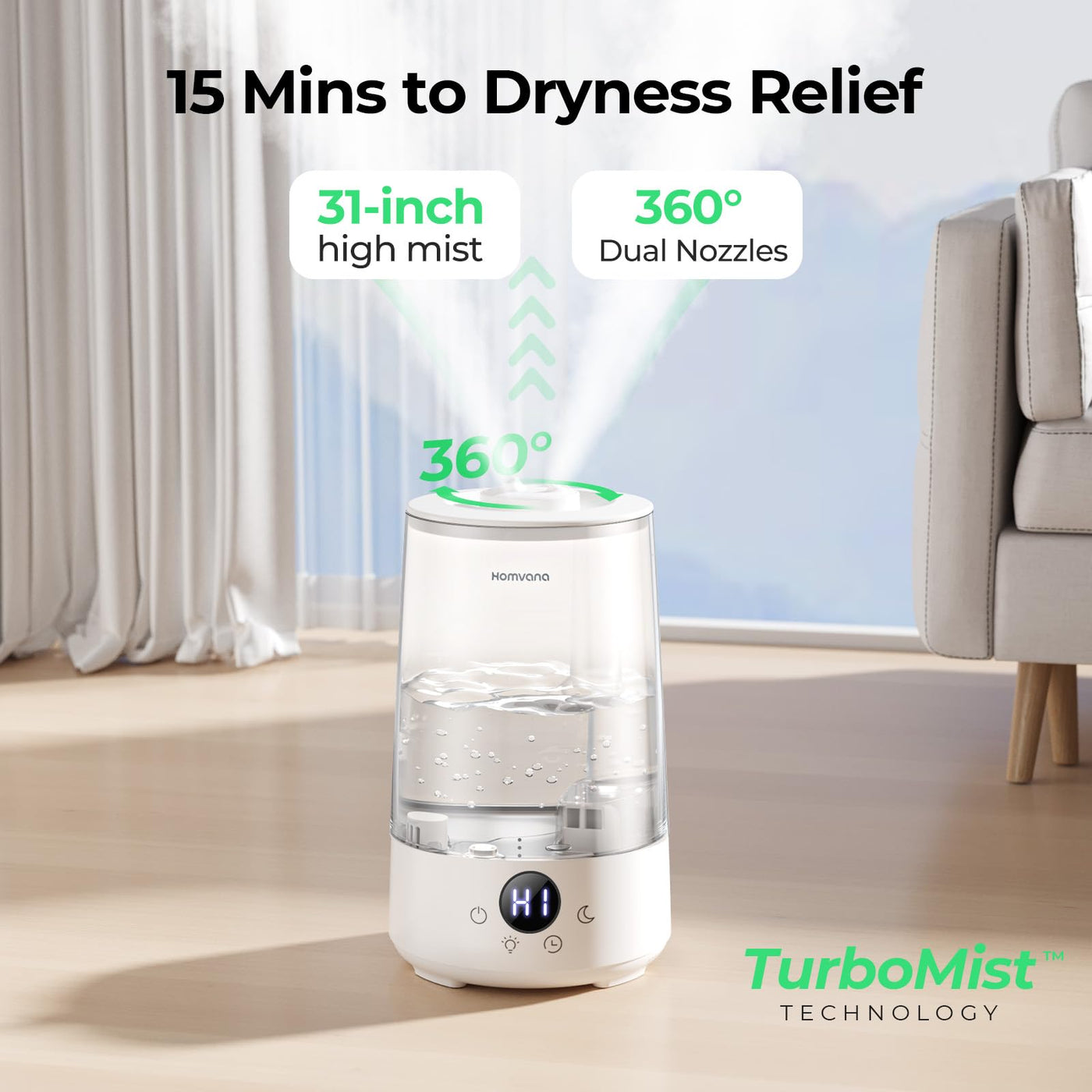 Homvana Humidifiers For Bedroom Home, 3.6 L Cool Mist Top Fill 34H Super Long Time, Quiet 16Db, Baby Humidifier, Oil Diffuser, P