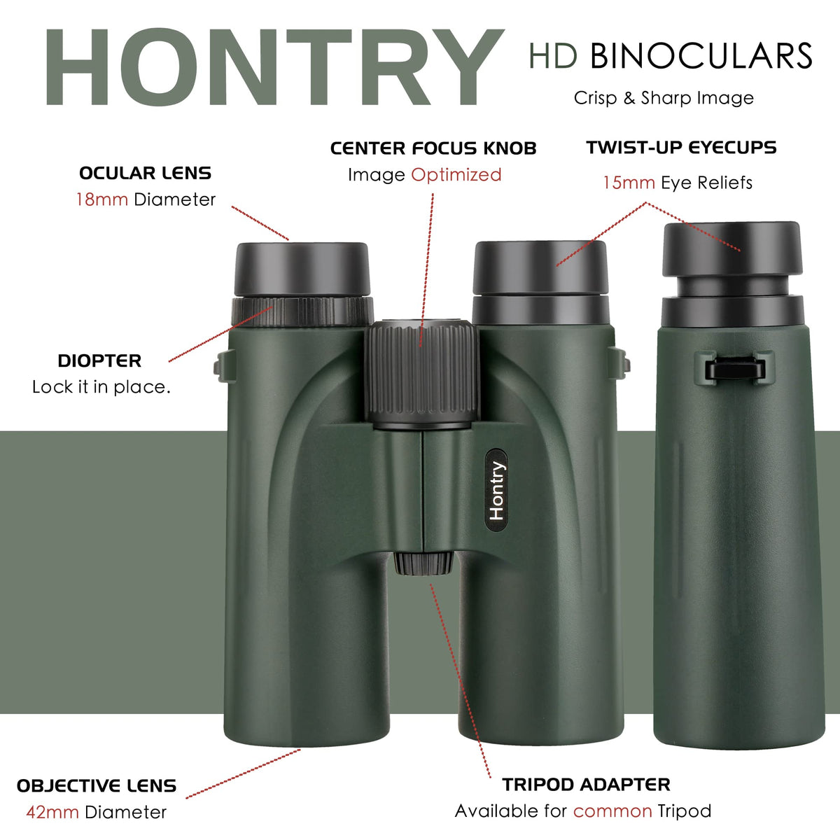 Q: Are the binoculars adaptable for different uses?A: Yes, the Hontry binoculars feature a durable rubber armor that provides a secure, non-slip grip and can be easily mounted on tripods or car window mounts. This adaptability makes them suitable for both beginners and seasoned birding enthusiasts.
