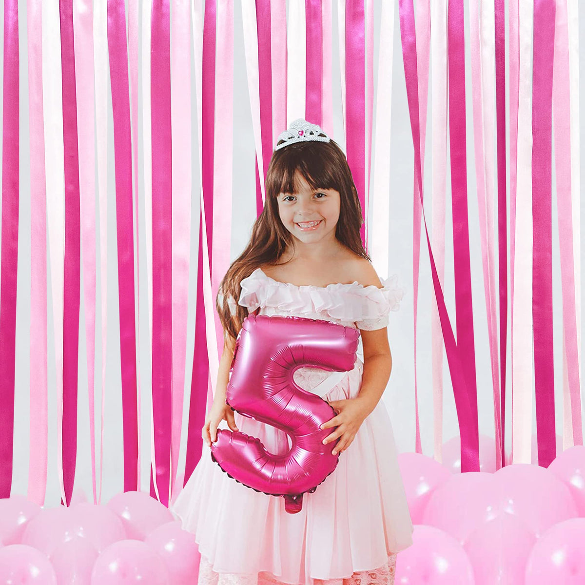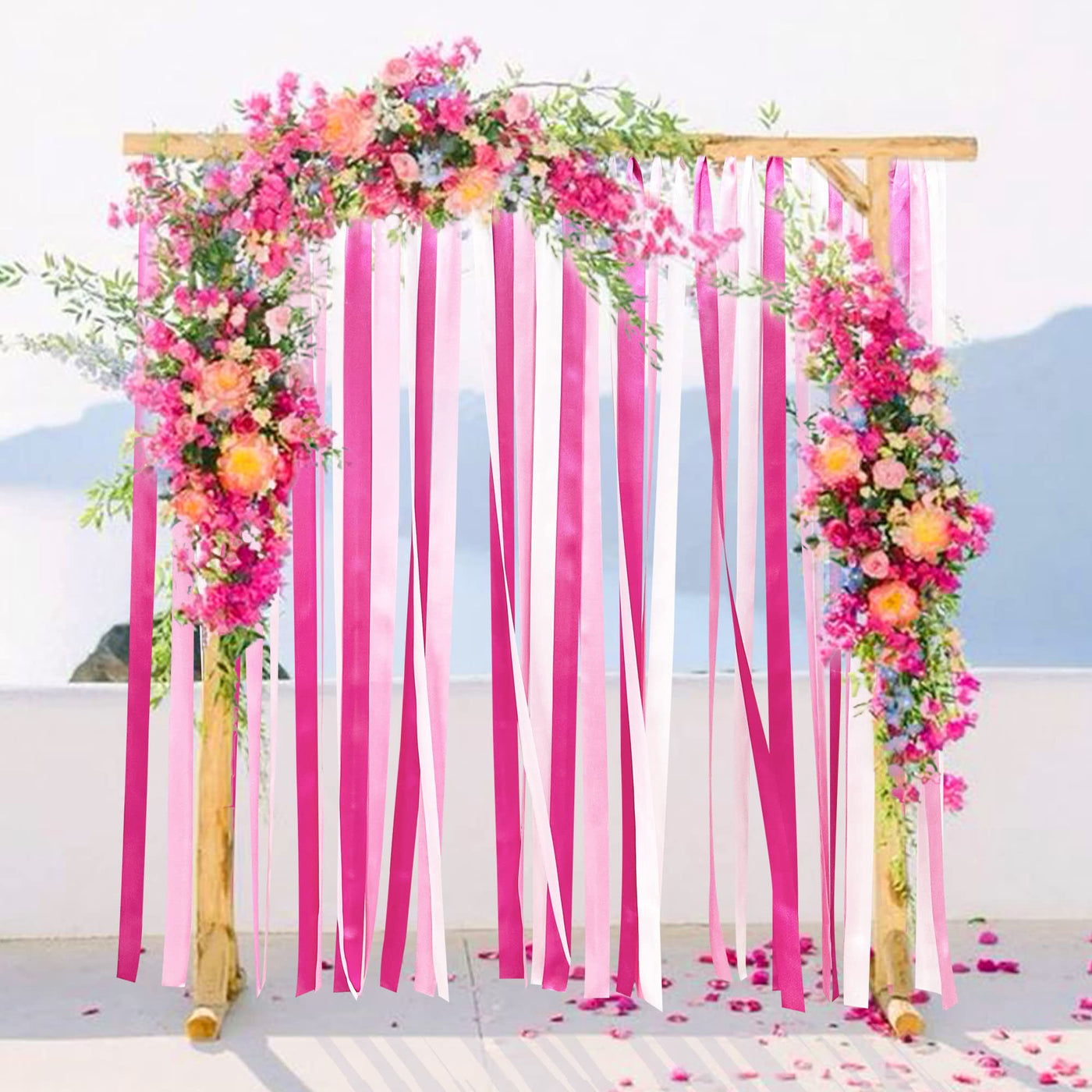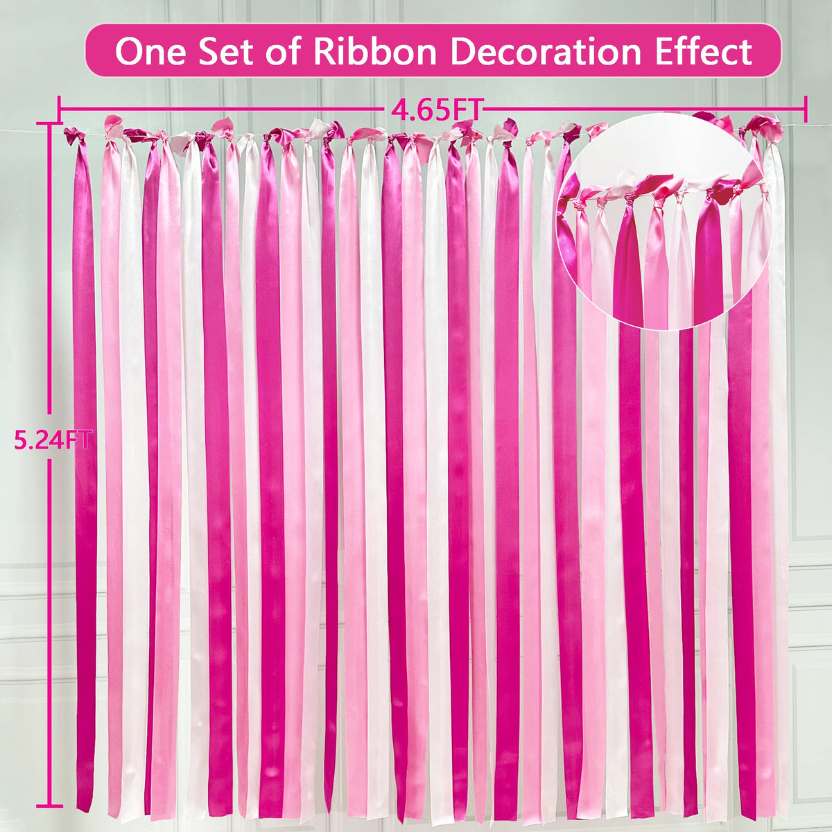 Hot Pink Party Decorations Ombre Pink Satin Ribbon Streamer Backdrop 197 Ft 1.97'' Wide Fringe Hanging Curtain Garland For Ba
