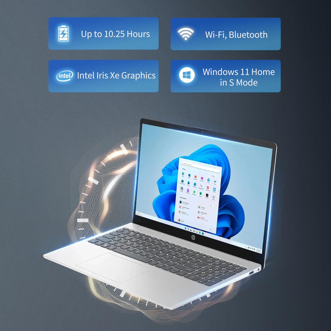 Key Features And Benefits: Cpu: Intel I5-1235U Processor (Up To 4.4Ghz Burst Frequency, 10 Cores, 12 Threads) Graphics: Intel Iris Xe Graphics Memory: Up To 64Gb Ddr4 Ram Hard Drive: Up To 1Tb Pcie Nvme M.2 Solid State Drive Operating System: Windows 11 Home In S Mode Display: 15.6'' Diagonal Touch Screen: Yes Numeric Keyboard: Yes Audio: Dual Speakers Battery Life: Up To 10.25 Hours Ports: 1 X Usb Type-C, 2 X Usb Type-A, 1 X Hdmi 1.4B, 1 X Headphone/Microphone Combo, 1 X Ac Smart Pin Camera: Hp True Vision 720P Hd Camera Wireless Connectivity: Wi-Fi, Bluetooth Dimensions: 14.17X9.29X0.73Inch Weight: 3.52Lb