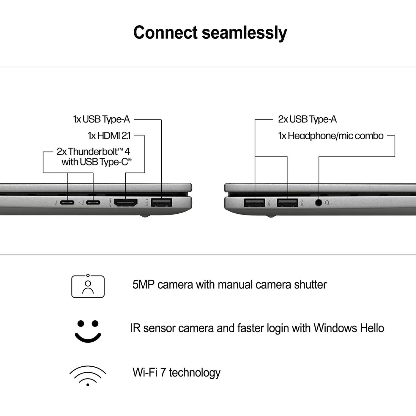 Key Features And Benefits: Cpu: Intel Core Ultra 7 155U Processor (12 Cores, 14 Threads, 12Mb L3 Cache, Base Frequency At 1.2 Ghz, Up To 4.8 Ghz At Max Turbo Frequency) Memory: Up To 64Gb Ram Hard Drive: Up To 8Tb Pcie Solid State Drive Operating System: Windows 11 Home Graphics: Nvidia Geforce Rtx 3050 (4 Gb Gddr6) Display: 17.3'' Diagonal, 4K Uhd (3840 X 2160), Ips, Edge-To-Edge Glass, Micro-Edge, Low Blue Light, 400 Nits Ports: 2 X Thunderbolt 4 With Usb Type-C 40Gbps Signaling Rate 3 X Usb Type-A 10Gbps Signaling Rate 1 X Hdmi 2.1 1 X Headphone/Microphone Combo Wireless Connectivity: Wi-Fi 7 Dimensions: 15.59 X 10.18 X 0.77 Inches Weight: 5.55 Lbs Color: Grey