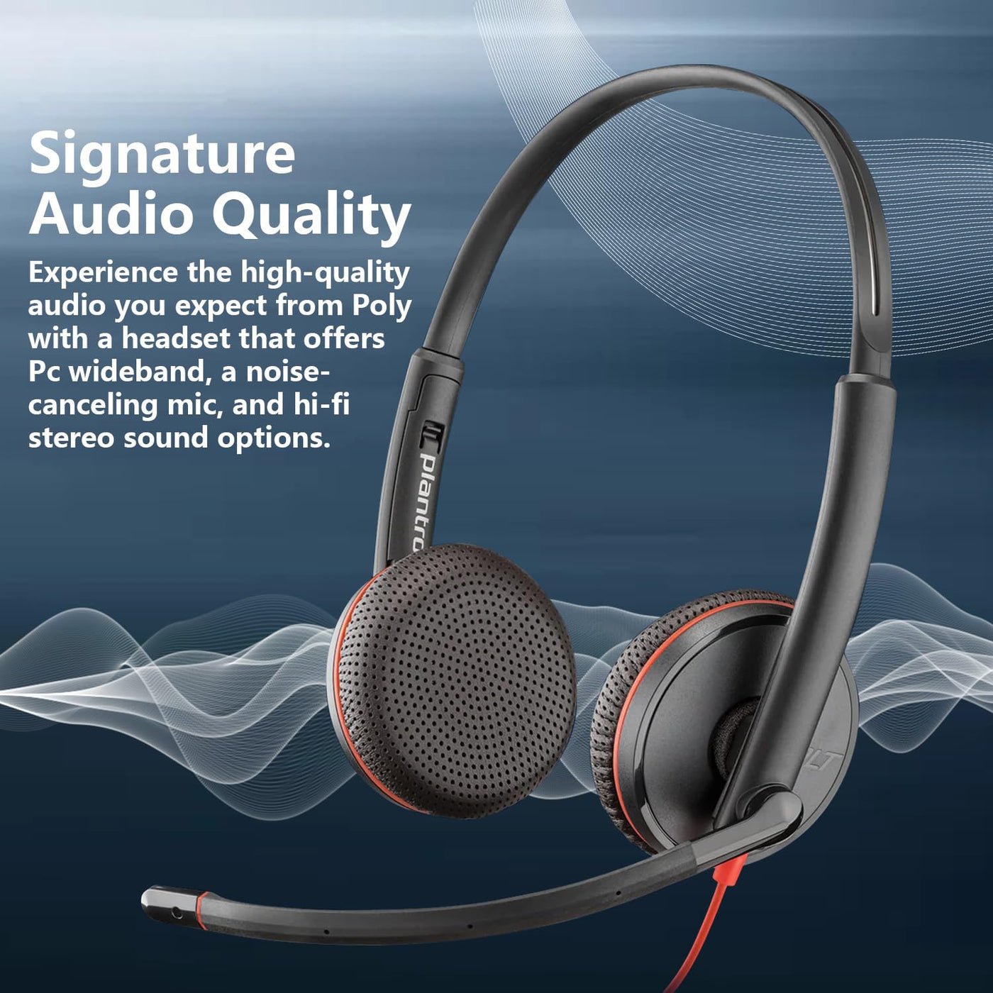 Hp Poly Blackwire C3225 Stereo Headset With Usb-C & 3.5Mm Connection, Noise Cancelling, Soundguard And Flexible Microphone Arm,