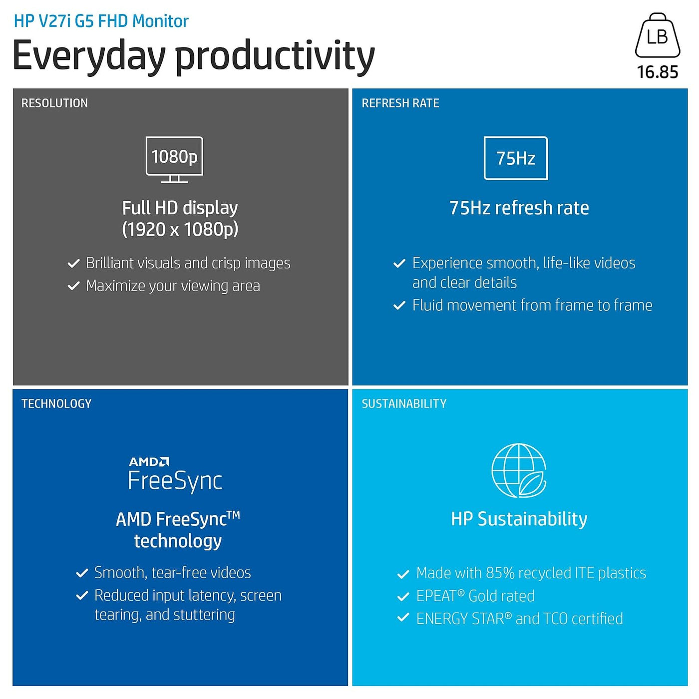 Hp V27I G5 Fhd Monitor Amd Freesync Technology Hdcp Support For Hdmi (V27I G5 Black)