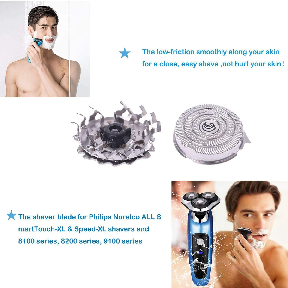 ?Fitment: ?1.Compatible With All Smarttouch-Xl & Speed-Xl Shavers Including: 9199Xl, 9195Xl, 9190Xl, 9170Xlcc, 9160Xl, 8240Xl, 8250Xl, 8251Xl, 8260Xl, 8260Xlcc, 8270Xl, 8270Xlcc, 8170Xl, 8171Xl, 8175Xl, 8280Xl, 8160Xlcc 8151Xl, 8150Xl, 8140Xl, 8138Xl ?2.Compatible With 8100 Series, 8200 Series, 9100 Series---Hq8100, Hq8140, Hq8142, Hq8150, Hq8160, Hq8170 C&C, Hq8174, Hq9100, Hq9140, Hq9160, Hq9170, Hq8141, Hq8155, Hq8172, Hq8173, Hq8200, Hq8240, Hq8241, Hq8250, Hq8253, Hq8260, Hq8261, Hq8270, Hq8290, Hq9020, Hq9070, Hq9080, Hq9090, Hq9161, Hq9190, Hq9199, Pt920 Hq8140 Hq9160 Hq9170 Hq919 Legal Disclaimer Non Original Aftermarket Part. Any Use Of The Brand Name Or Model Designation For This Product Is Made Solely For Purposes Of Demonstrating Compatibility.The Part/Product Is Not Sponsored Or Endorsed By,Or Affiliated With The Brands It Fit,Including Philips Norelcos.