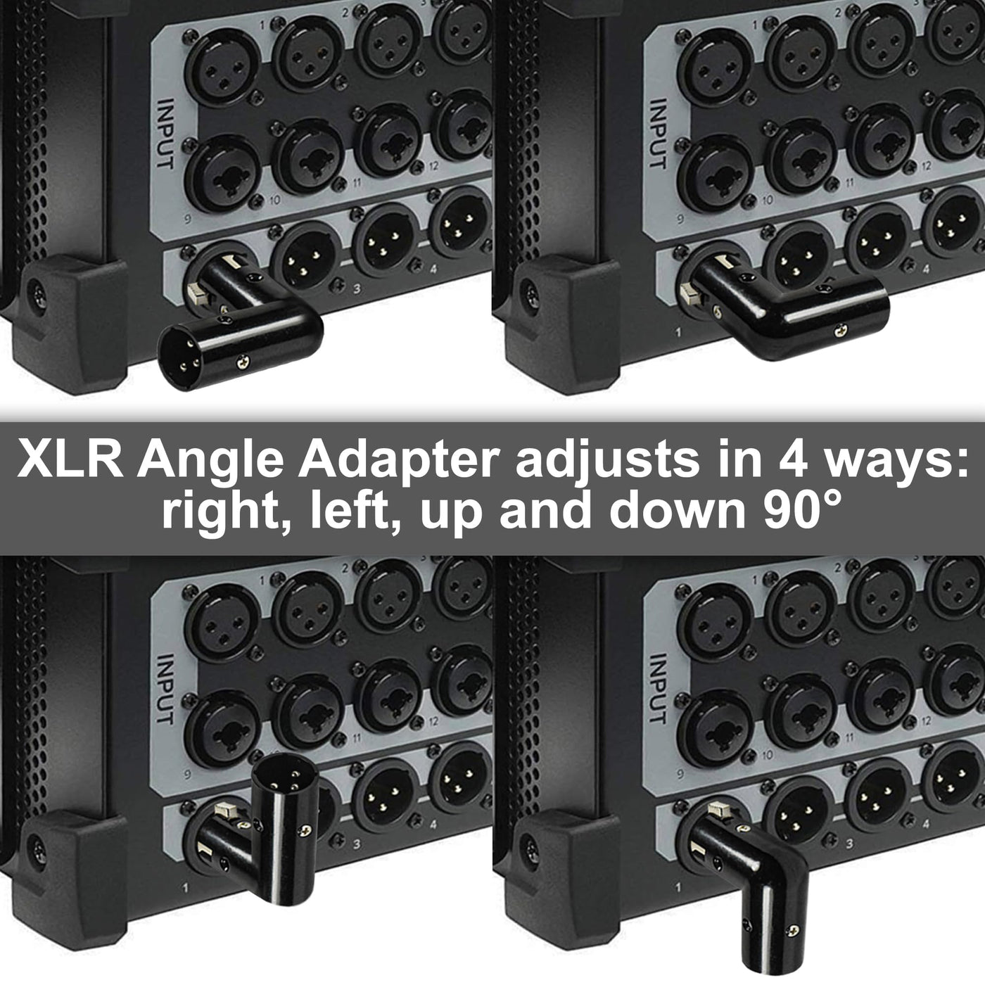 Hqrp 2-Pack 3-Pin Xlr Angle Adapter Dual Male And Female.Our Xlr Angle Adapter Adjusts In 4 Ways - Right, Left, Up And Down 90 - For Limitless Positioning Options.Easy To Use: Remove Screw, Then Gently Pull Out Connector From Housing, Position Into Desired Angle (But Dont Exceed 360) And Reinsert Screw And Tighten. Adapter Is Now Ready To Use.The Low-Profile Design Of Our Xlr Angle Adapter Keeps Your Cables Organized, And Everything Routed In The Correct Direction.Compatible With Mixers That Interfere With Other Applications, Used By Podcasters, Bands, Singers, Recording Artists, Professional Speakers And Anyone, Who Involved In Any Kind Of Audio Installations, Site Setups, Or Remote Location Work.Disclaimer:This Is Not An Original Equipment Manufacturer (Oem) Product, Hqrp Branded Product Is A Replacement. All Brand Names And Logos Are Registered Trademarks Of Their Respective Owners. Any Use Of The Brand Names Or Model Designations For This Product Are Made Solely For Purposes Of Demonstrating Compatibility.