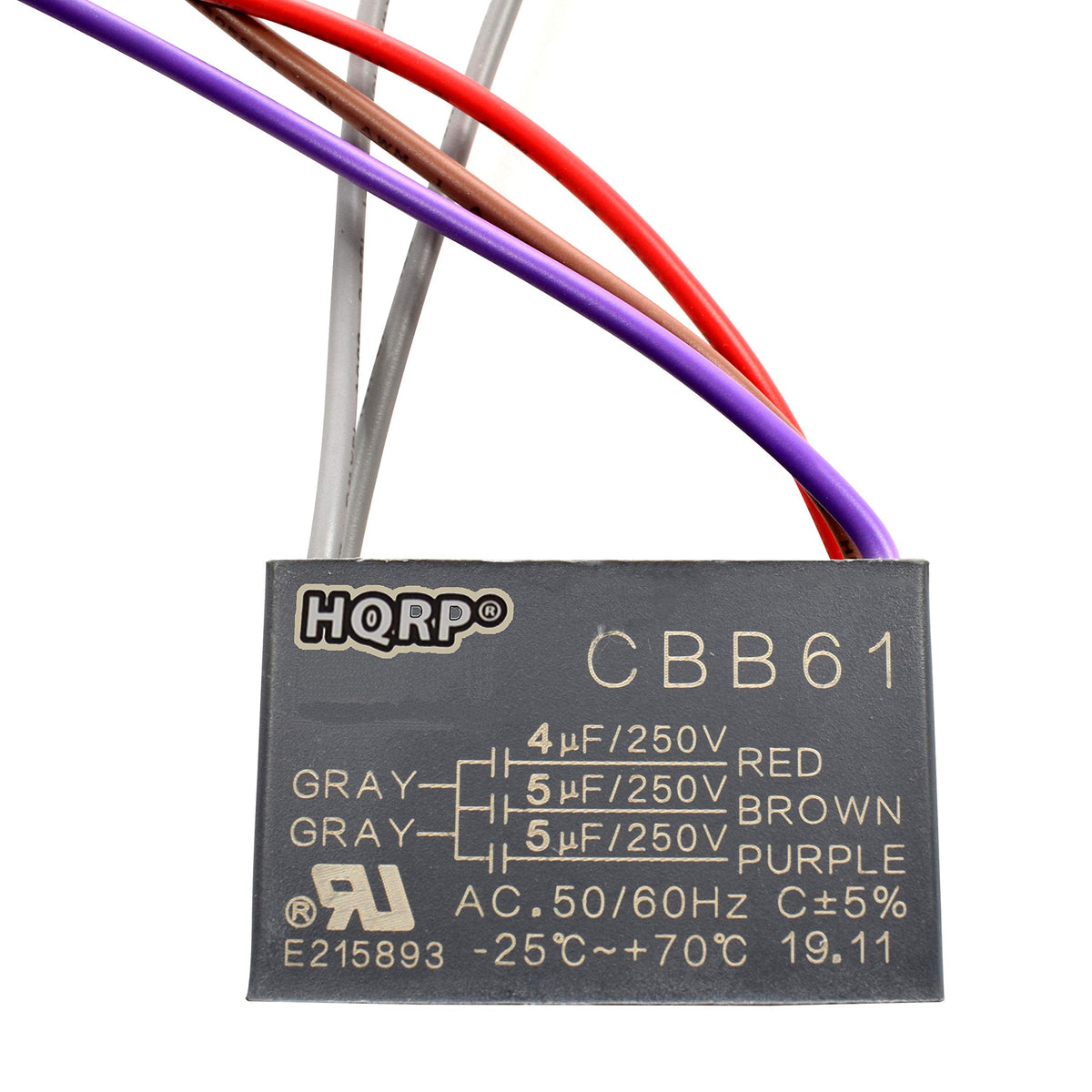 Hqrp 2 Pack Ceiling Fan Capacitor Cbb61 4Uf+5Uf+5Uf 5 Wire
