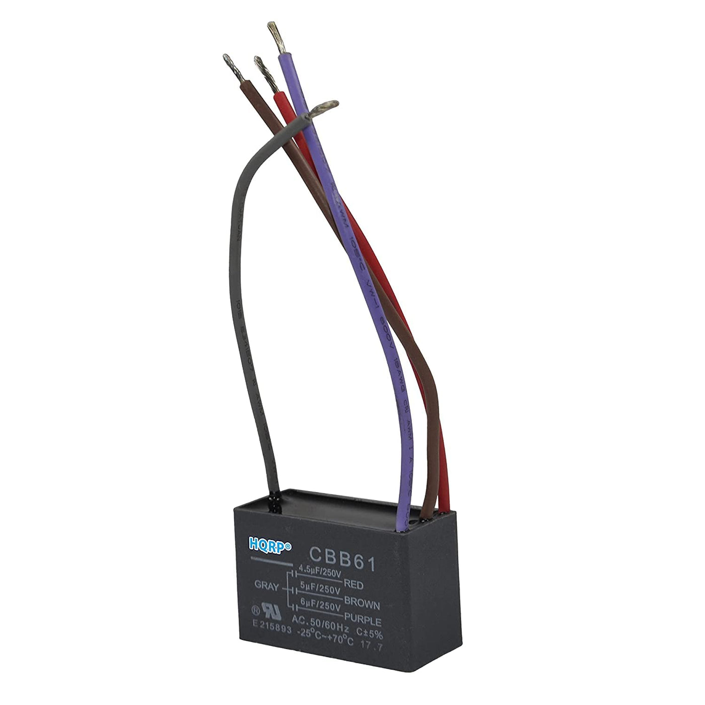 Hqrp Capacitor Compatible With Hampton Bay Ceiling Fan 4.5Uf+5Uf+6Uf 4 Wire Cbb61