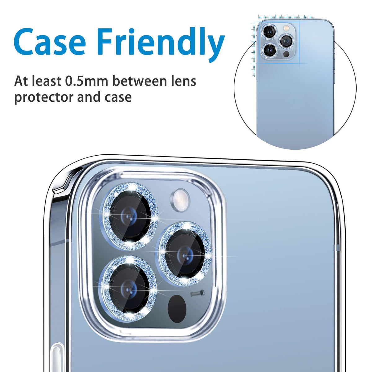 Designed For 13 Pro 61 13 Pro Max 67 2021 With Three Camera (Note: Not For 13 Mini13 With Two Camera) No Bubbles, Case Friendly, Leave No Residue After Removed Full Protection The Aviation Aluminum Metal Ring And 9H Tempered Glass Single Camera Protector Protect Your I Phone 13 Pro13 Pro Max Camera Lens From Damage And Scratches The Seal Ring Is Designed To Prevent Dust And Water Secure Protection Resist Shock, Drop Off Or Big Impact Towards Your Camera And Keeps You Peaceful 3D Texture The Delicate And Precise Spiral Pattern Produces Fascinating Reflections And The Unbeatable Shine And Bling Of Diamonds Have A Super Glitter Effect In Any Light, Which Protect Your Lens While Making It A Personalized Decoration Super Clear The 9H Tempered Glass Is Highly Transparent No Influence To Apple Phone 13 Pro 13 Pro Max Original Amazing Image Performance No Residue, No Fog, No Blue Light Is Caused When Using Flash Easy To Install The Package Includes 3 Pieces Of Camera Cover Ring Is Very Cost-Effective Kindly Remind Please Don Install The Camera Lens Protector Immediately After Cleaning The Lens With An Wet Cloth, Which May Cause The Camera Lens Film To Fog Due To The Volatilization Of Wet Cloth After Cleaning The Lens And Drying The Lens, Wait Two Minutes Before Proceeding To The Next Step Can Solve This Problem