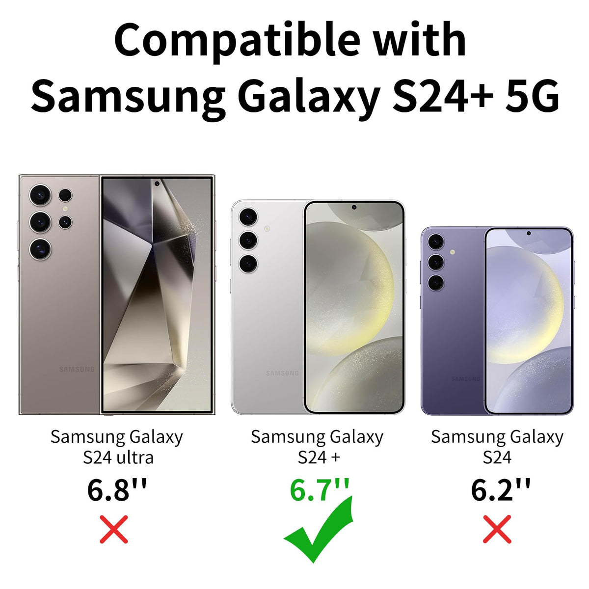 Q: Is the Hsefo case compatible with Samsung Galaxy S24 and S24 Ultra?A: No, the Hsefo Designed for Samsung Galaxy S24 Plus Case is specifically designed for the Galaxy S24 Plus 5G and is not compatible with the Galaxy S24 or S24 Ultra models.