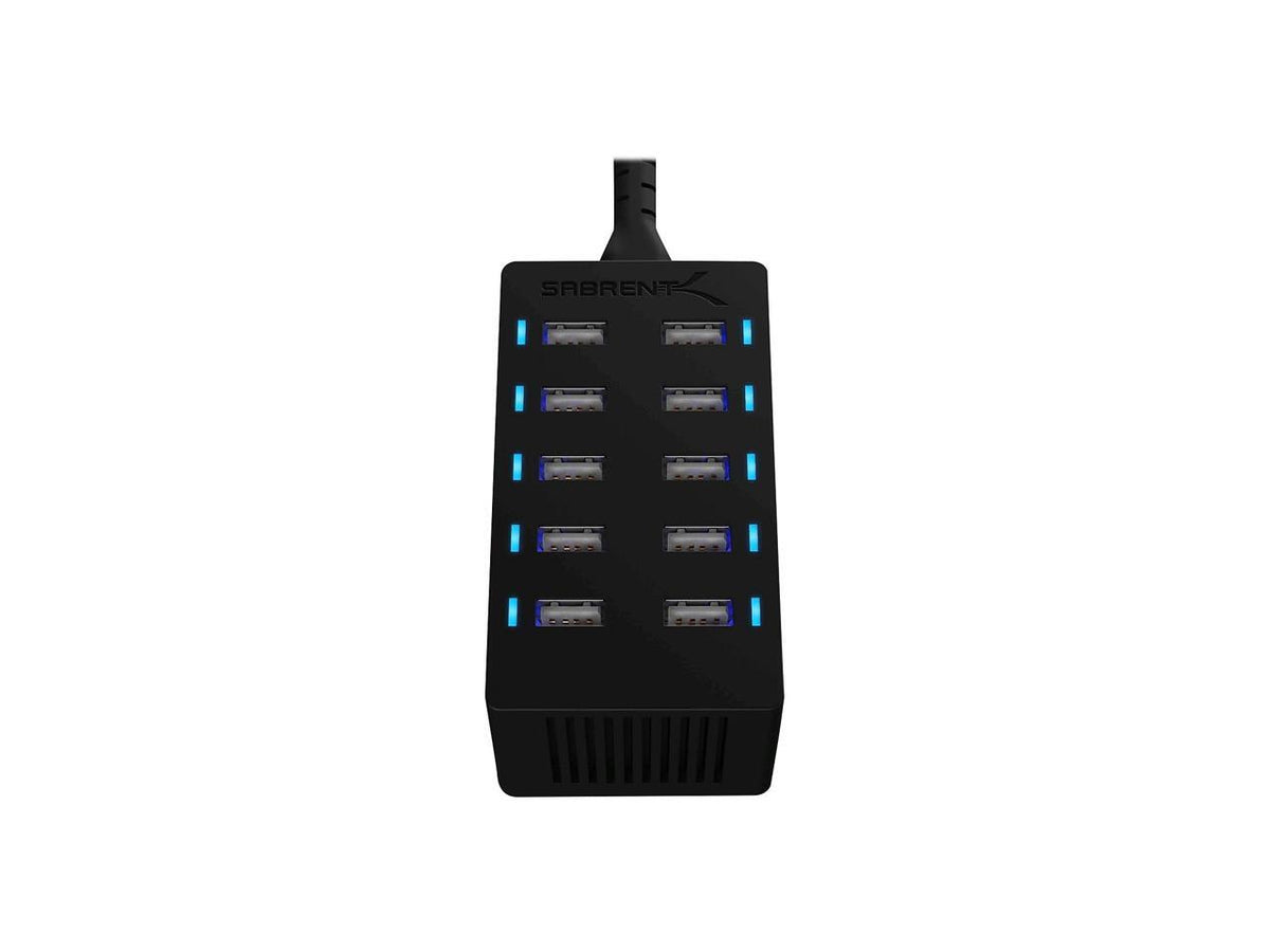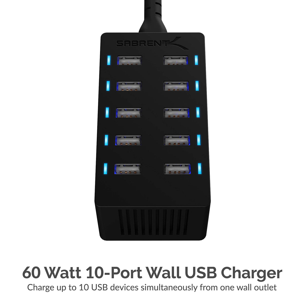 Sabrent 60 Watt (12 Amp) 10 Port Ul Certified] Family Sized Desktop Usb Rapid Charger Smart Usb Ports With Auto Detect Technology Black] (Ax-Tpcs)