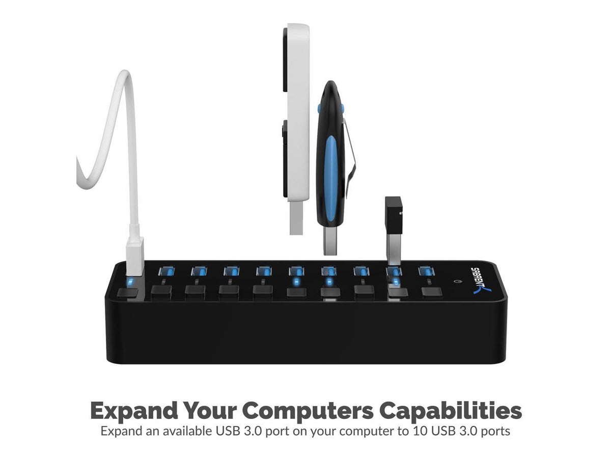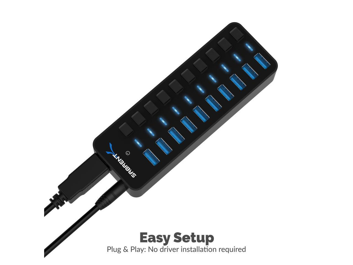 Sabrent 10-Port 60W Usb 30 Hub With Individual Power Switches And Leds Includes 60W 12V5A Power Adapter (Hb-Bu10)