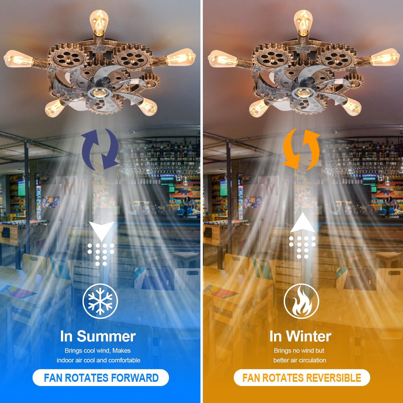 Retro Industrial Ceiling Fans With Lights Steampunk Lamp Vintage Design, Fan Style, Diy Lightings This Is A Unique Creative Fan Light Fixtures, Antique Rudder With Retro Gear And Vintage . The Ceiling Fans With Lights Exude A Strong Industrial Sense, Typical Industrial Steampunk Style. This Industrial Ceiling Fans With Lights Is Suitable To Be Placed In An Industrial Themed Style Shop. If You Have An Industrial Themed Style Shop, Such As A Coffee Shop, Restaurant, Barber Shop, Bar, Clothing Store, Hair Salon, Etc. If You Are Looking For A Perfect Industrial Light Fixture For Your Store,Then You Can Consider This Industrial Ceiling Fans With Lights , I Believe Its Industrial Steampunk Sense Will Definitely Suit Your Store. In Addition To Industrial Style Shops, This Ceiling Fans With Lights Is Also Suitable For Home Places. If You Like Industrial Steampunk, You Can Consider This Industrial Pendant Ceiling Fans With Lights. You Can Put It Wherever You Like, No Matter Where It Is, It Will Be Outstanding.
