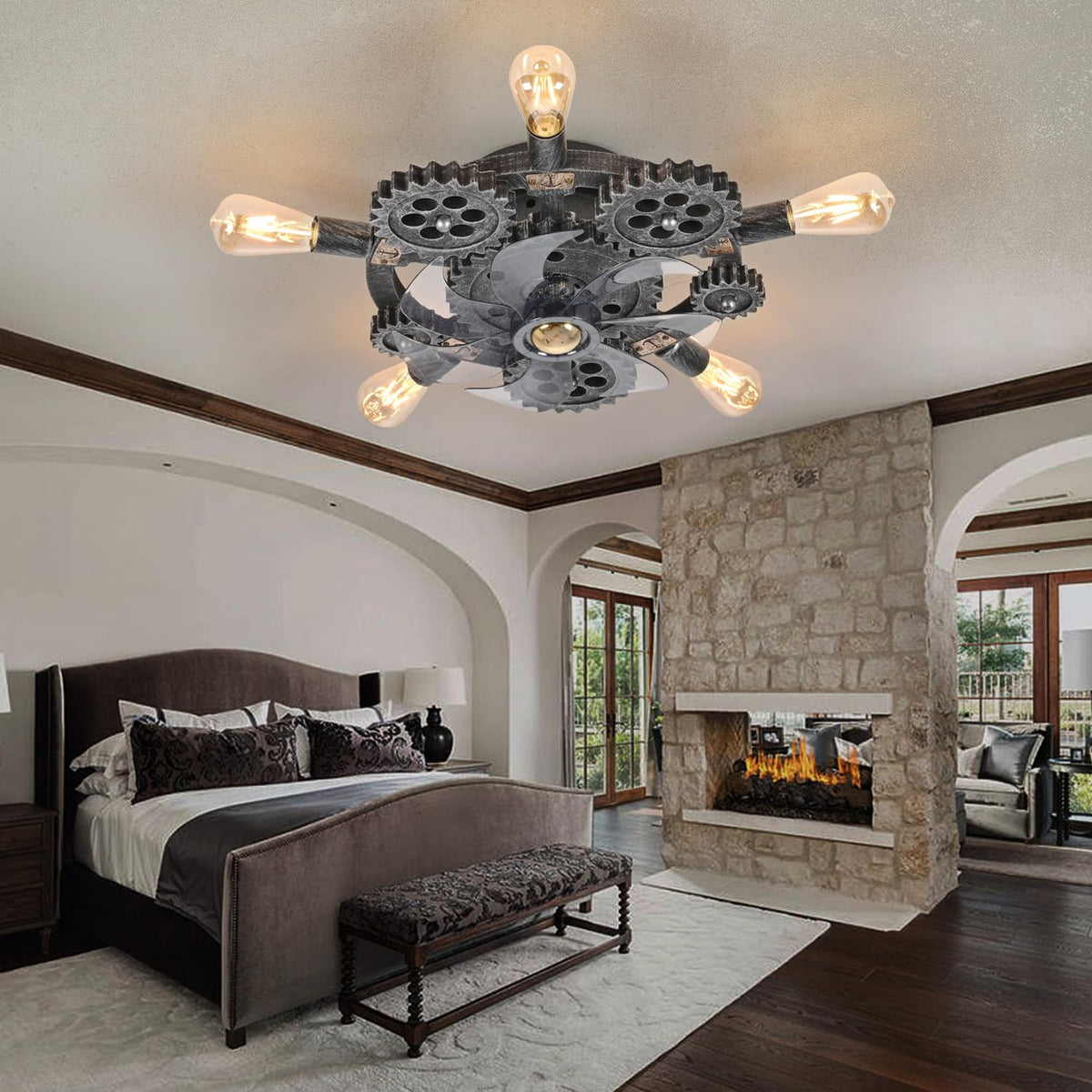 Retro Industrial Ceiling Fans With Lights Steampunk Lamp Vintage Design, Fan Style, Diy Lightings This Is A Unique Creative Fan Light Fixtures, Antique Rudder With Retro Gear And Vintage . The Ceiling Fans With Lights Exude A Strong Industrial Sense, Typical Industrial Steampunk Style. This Industrial Ceiling Fans With Lights Is Suitable To Be Placed In An Industrial Themed Style Shop. If You Have An Industrial Themed Style Shop, Such As A Coffee Shop, Restaurant, Barber Shop, Bar, Clothing Store, Hair Salon, Etc. If You Are Looking For A Perfect Industrial Light Fixture For Your Store,Then You Can Consider This Industrial Ceiling Fans With Lights , I Believe Its Industrial Steampunk Sense Will Definitely Suit Your Store.In Addition To Industrial Style Shops, This Ceiling Fans With Lights Is Also Suitable For Home Places. If You Like Industrial Steampunk, You Can Consider This Industrial Pendant Ceiling Fans With Lights. You Can Put It Wherever You Like, No Matter Where It Is, It Will Be Outstanding.