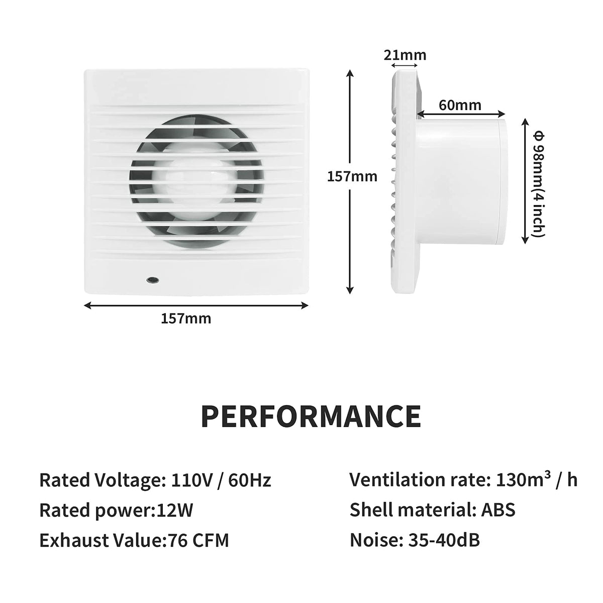 Exhaust Fan 76 Cfm, 12W 130Mah Ventilation Extractor With Anti-Backflow Check Valve Chain Switch, Window And Wall Mount Vent Fans For Kitchen Bathroom Greenhouse Garage (4 Inch 110V) Product Specifications: Connection Pipe: A100Mm Voltage: 110V 60Hz Power Supply: 12W Ventilation Rate: 130Ma H Shell Material: Abs Noise: 34Db Key Features: -Perfect For Boosting Air Flow -Energy Efficient & Quiet Operation -Lightweight & Super Easy To Install -Engineered For Maximum Boost With Minimum Noise -Motor Features A Permanently Lubricated Bearing That Operates Quietly And Requires No Maintenance -Can Be Installed In Any Location, Such As Bathrooms, Attics, Greenhouses, Tents, Etc In Order To Maintain A Safe And Comfortable Living Environment, Proper Ventilation In The Home Is Very Necessary Hugoome Ventilation Fans Provide The Best Solution To Ensure That Pollutants Are Continuously Removed From The Room When Used As A Kitchen Exhaust Fan, Quickly Exhaust Smoke When Used As A Bathroom Exhaust Fan, Promptly Exhaust Moisture And Bad Odors When Used As Household Ventilation Fans, Exhaust Dirty Air To Maintain Fresh Indoor Air In Addition, The Exhaust Fan Is Perfectly Suitable For Greenhouse, Attic, Basement, Garage, Office, Living Room And Other Places That Need Ventilation