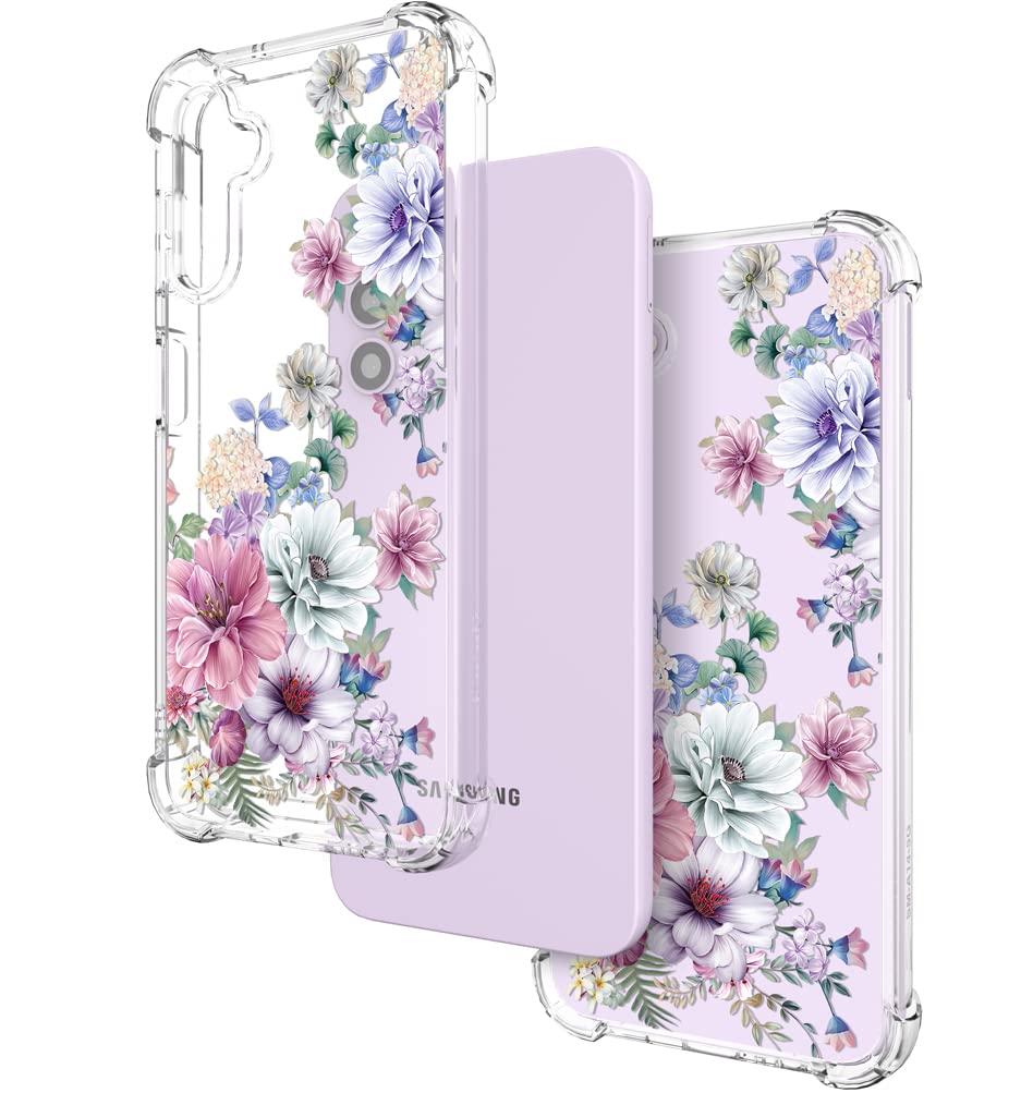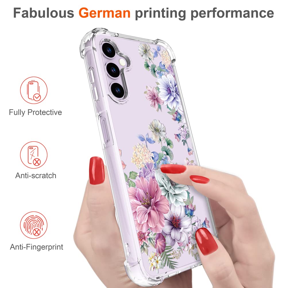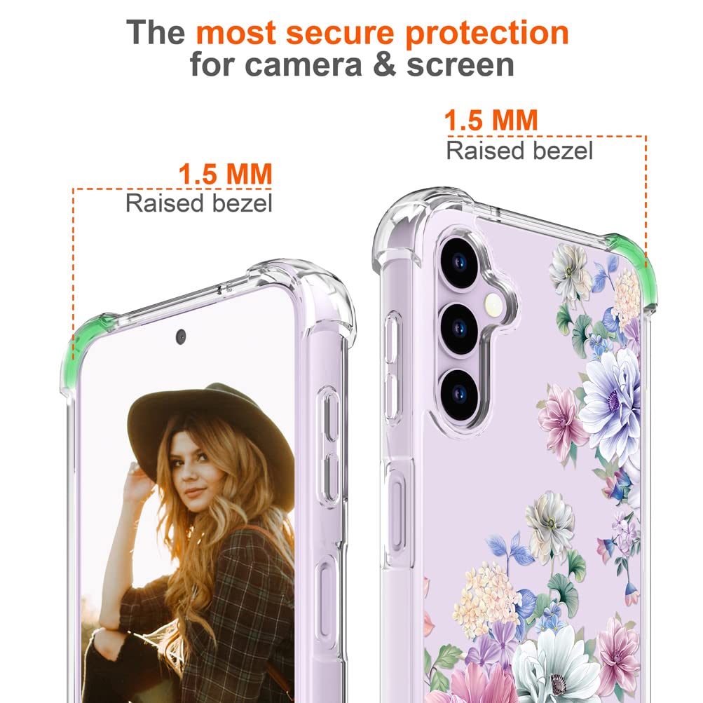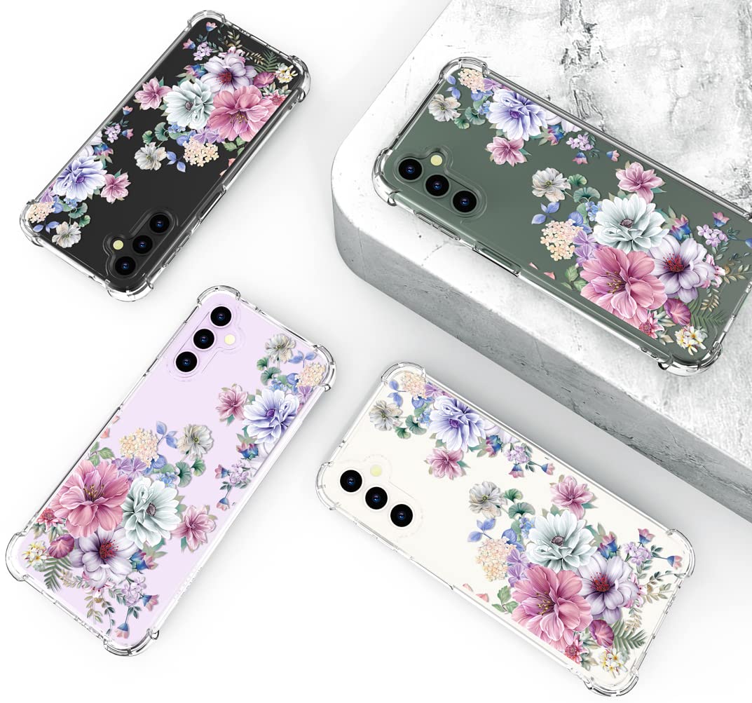 Hungo Samung Galaxy S23 Case Floral Flower Cute Clear With Design, Girly For Women Girls Floral Transparent Case Compatible With