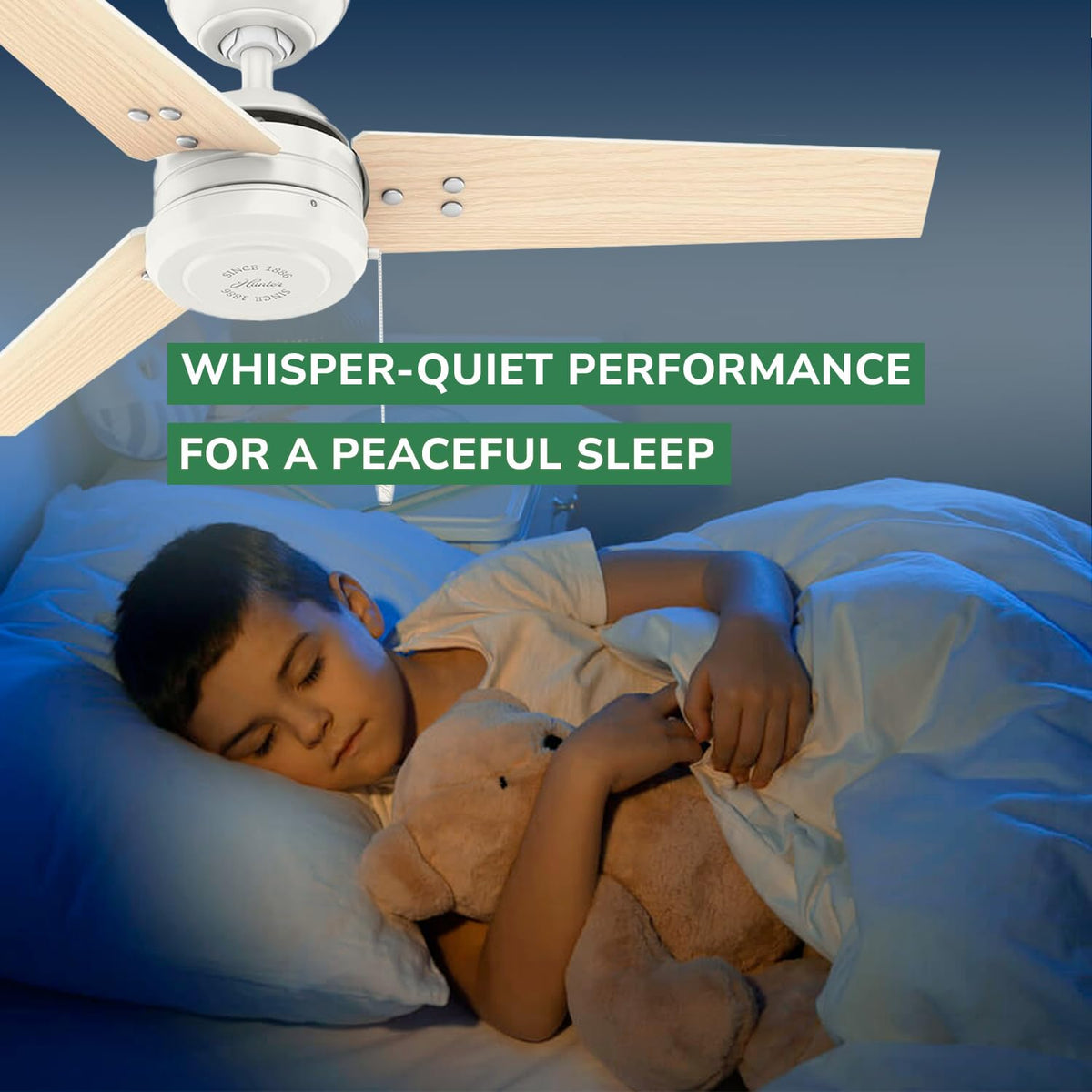 The Hunter 50260 Cassius Outdoor Ceiling Fan With Pull Chain, 44, Fresh White Finish, Is A Great Addition To Any Home. This Ceiling Fan White Option Fits Well With Contemporary Interiors, Boasting Matte White Reversible Blades That Keep Your Home Stylish And Refreshed. Ideal For Use As A Ventilador De Techo Without Compromising On Style, This Ceiling Fan Can Be Adjusted With The Included Downrods To Optimize Air Movement. Whether You Need A Ceiling Fan For Bedroom, Or An Outdoor Patio Ceiling Fan, The Cassius Is Versatile And Efficient. Equipped With A Multi-Speed Whisperwind Motor, This Ceiling Fan Without Light Offers Ultra-Powerful Airflow With Minimal Noise. You Can Easily Adjust Its Direction From Downdraft Mode In The Summer To Updraft Mode In The Winter, Making It A Year-Round Fixture. With The Convenient Pull Chain Control, You Can Quickly Switch The White Ceiling Fan On And Off And Change The Speed Effortlessly. Designed For Both Indoor And Outdoor Use, The Hunter Cassius Is A Great Fit For Covered Patios, Sunrooms, And Even Bedrooms. This Exterior Ceiling Fan Is Damp-Rated To Withstand Moisture And Humidity, Making A Great Outdoor Fan For Patios. The Clean Lines And Exposed Hardware Of This Ventiladores De Techo Modernos Model Complement Modern Industrial And Farmhouse Styles Beautifully. The Adaptable Mounting System Allows For Standard, Low, Or Angled Setups, Ensuring Proper Installation Height For An Optimal Airflow Experience. This Ventilador De Techo Moderno Is Perfect For Any Room With Low Ceilings And Maintains A Comfortable Environment Year-Round.