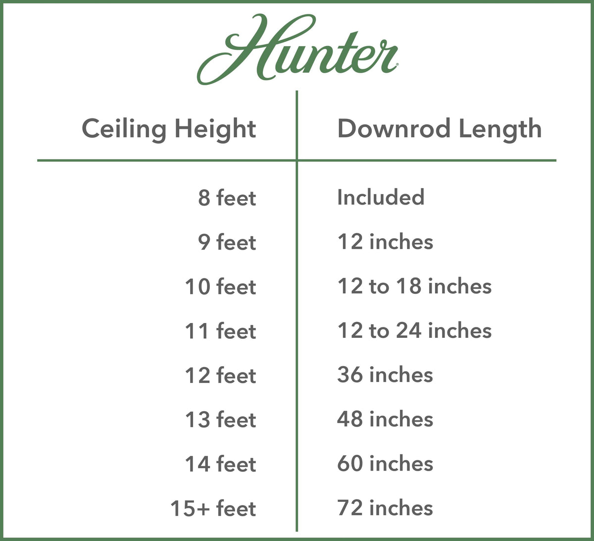 Hunter 25145 18-Inch Black Standard Extension Down Rod For 10-Feet Ceiling Height Makes Your Hunter Ceiling Fan More Versatile. No Matter How High Or Steeply Sloped Your Ceiling, Chances Are You Can Still Install A High Quality Hunter Fan. The 3/4-Inch Down Rod Sets The Fan At The Proper Height For Optimum Performance. White Finish For Use With White Fans. Standard Down Rods Are Not For Use With Hunter Original Fans Or Other Fan Brands. Hunter Standard Extension Down Rods Match Standard Hunter Fans For Fit And Finish And Have Tapered Threads For Deeper Engagement. All Standard Down Rods Are Converting To Single Threaded Construction With Threads At One End Only. 3/4-Inch Diameter.
