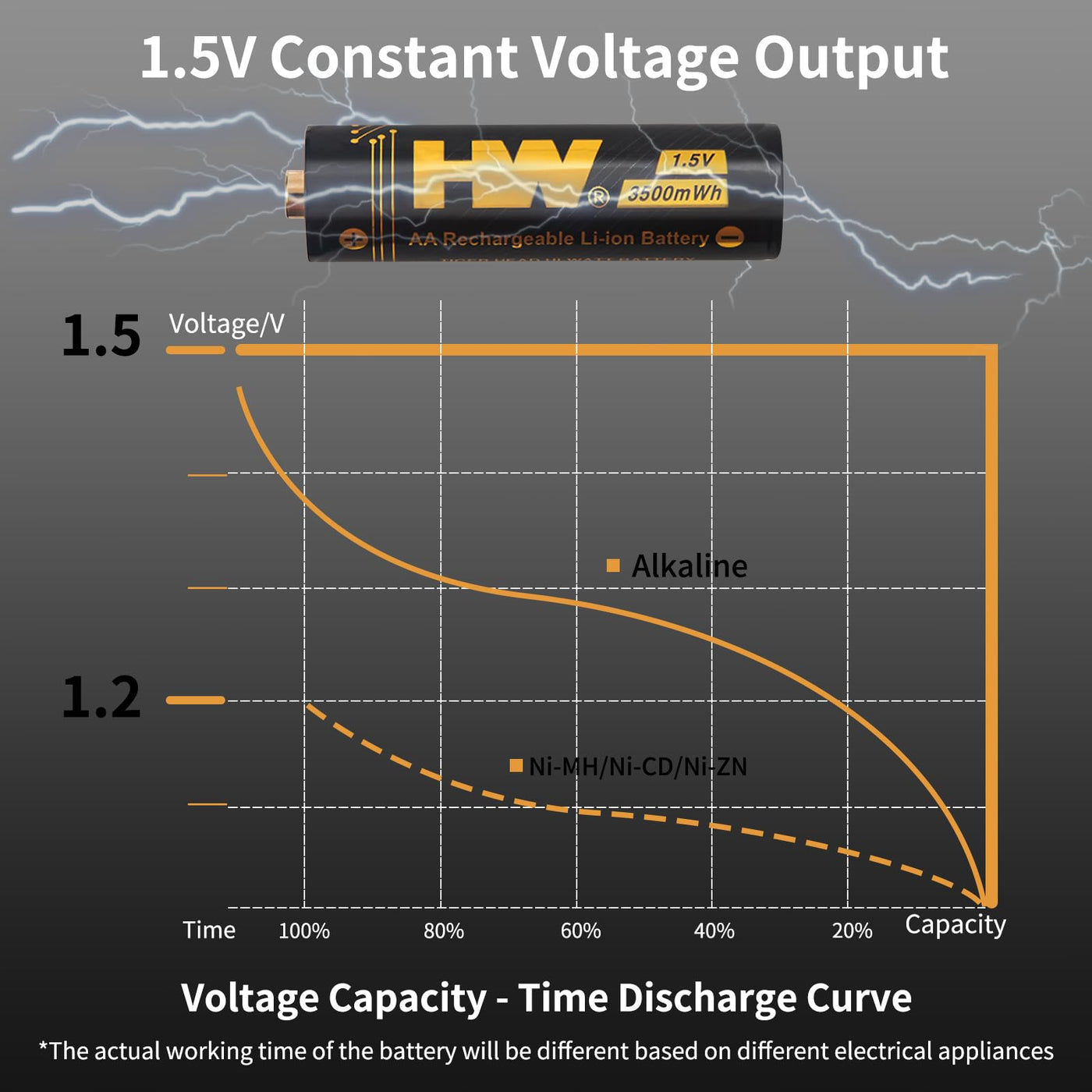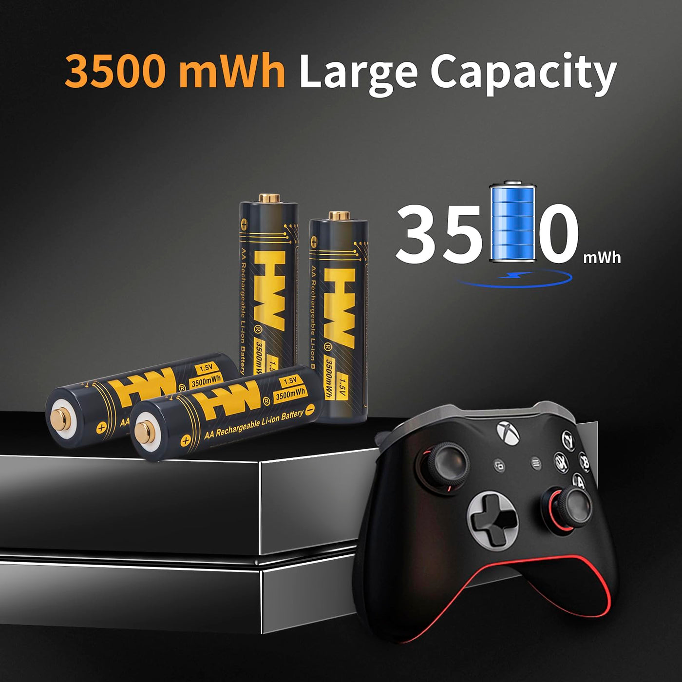 Hw Rechargeable Lithium Aa Batteries, 3500Mwh Long Lasting Power, 1000+ Cycles, 2.5H Fast Charge, Double A Lithium Ion Battery