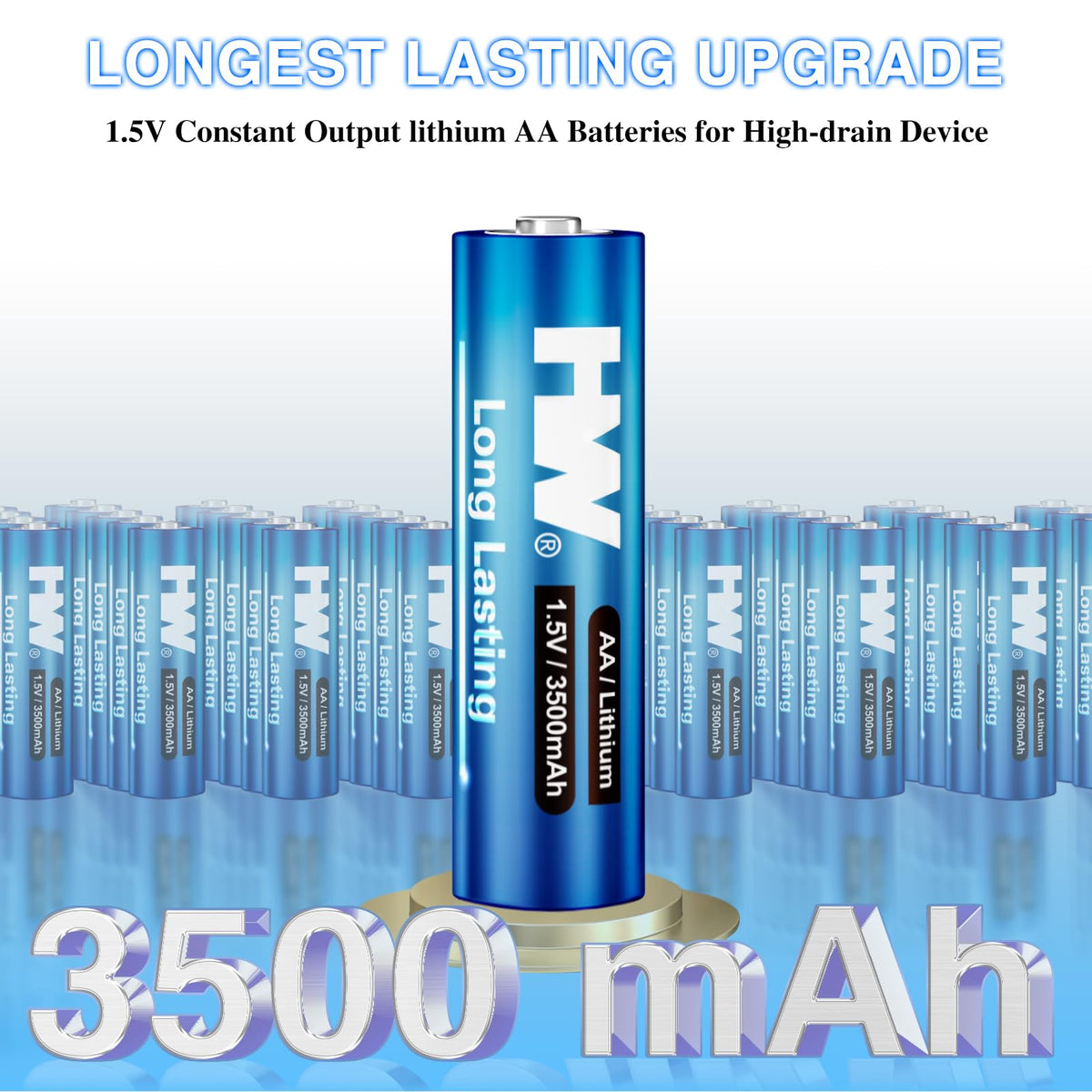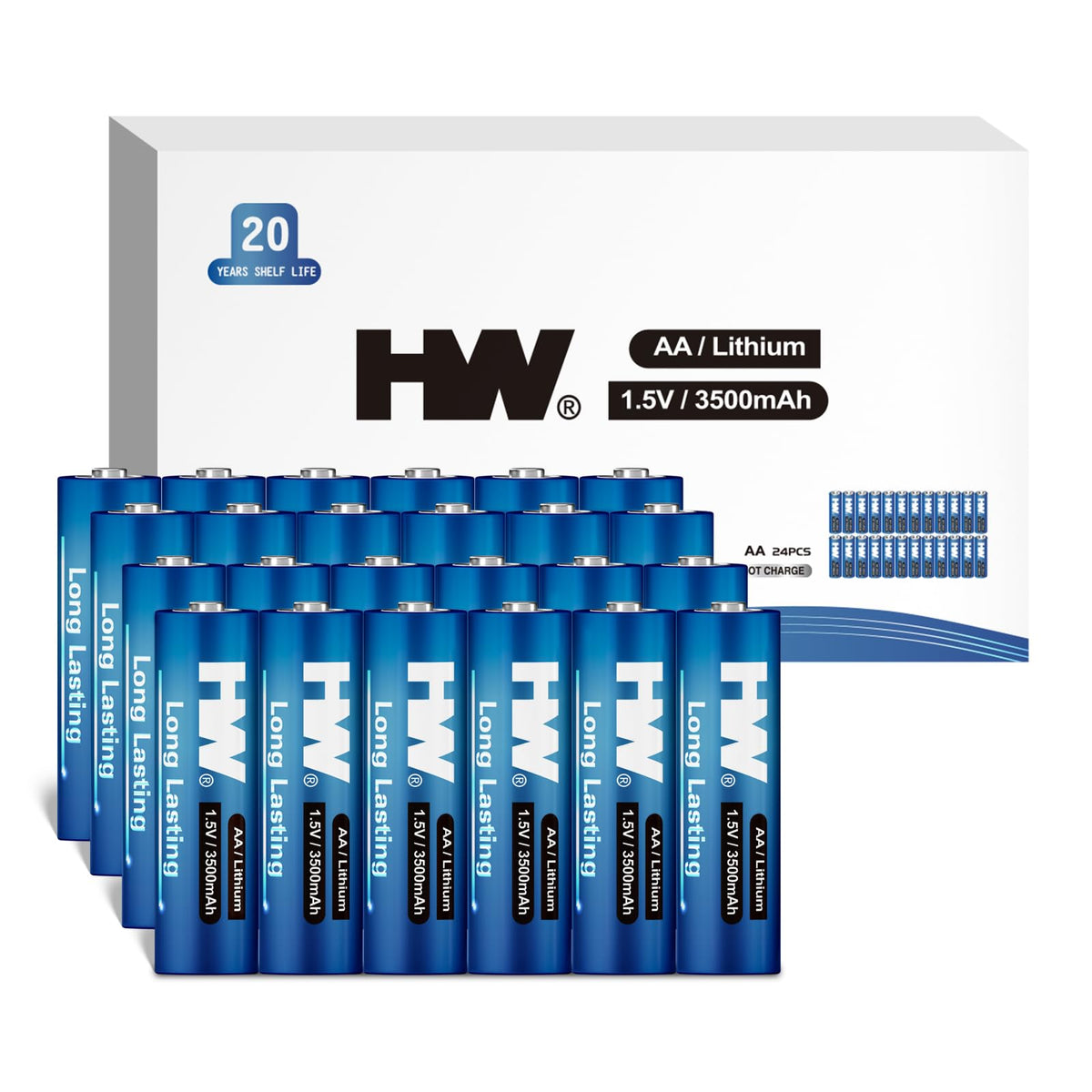 Hw Lithium Aa Batteries 24 Pack, High Capacity 3500Mah, Non-Rechargeable Long Lasting Double A Batteries 1.5V Constant Volt, Lit
