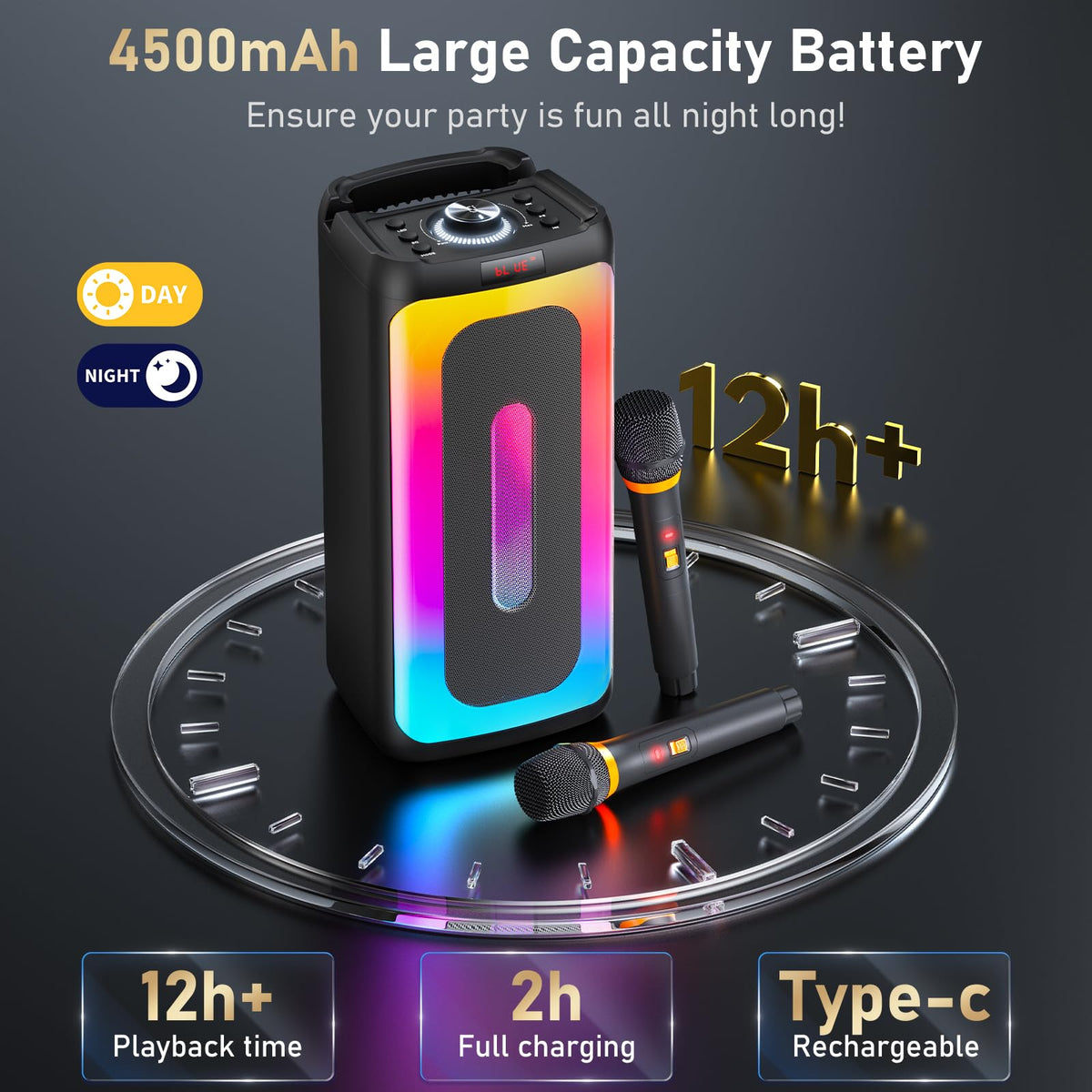 Hwwr Karaoke Machine With 2 Wireless Microphones, Portable Bluetooth Karaoke Speaker For Adults & Kids, Pa System Speaker For Ga