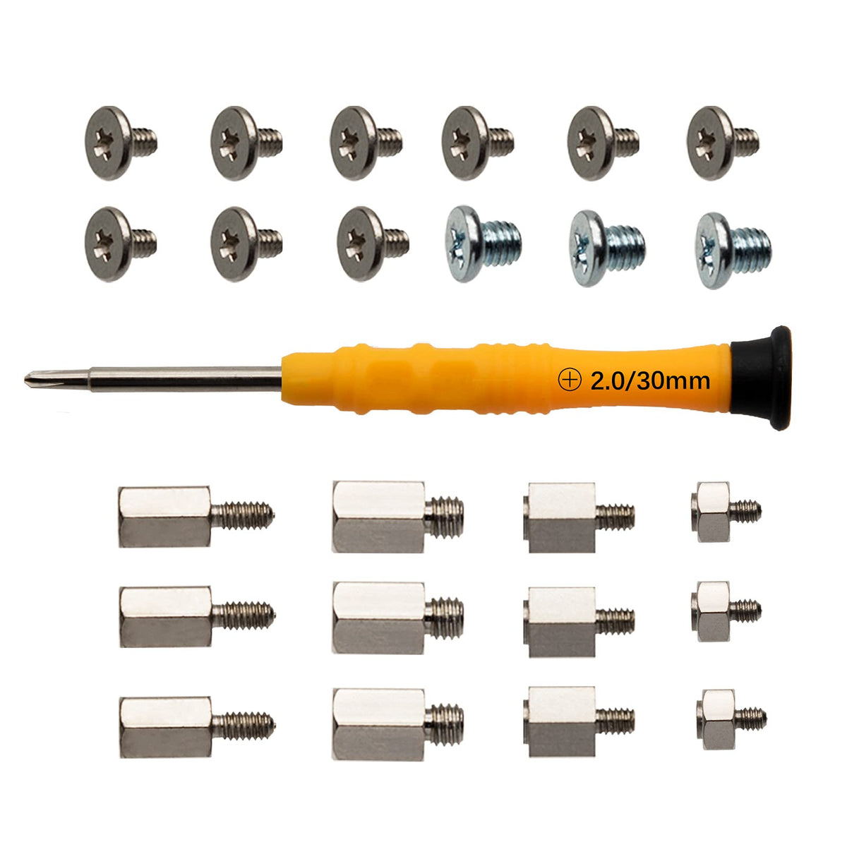 Q: What is included in the HXHLWN m.2 Screw kit?A: The HXHLWN m.2 Screw kit includes 12 hex head jackscrews, 12 flat head screws, and 1 screwdriver, providing everything you need for mounting M.2 SSDs.