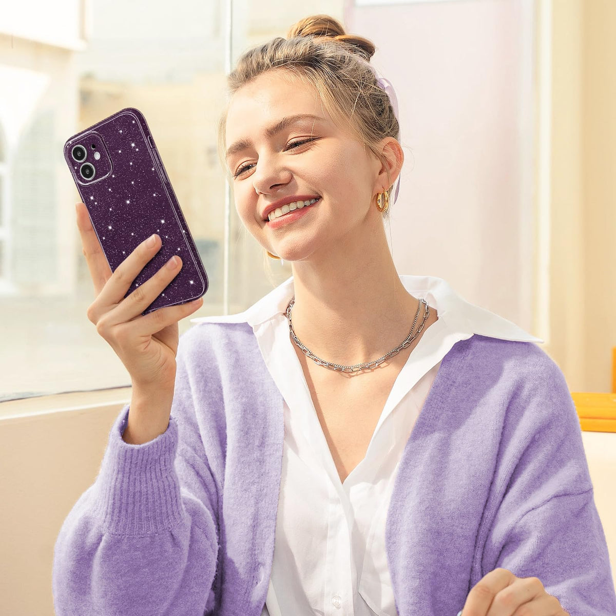 Q: What materials are used in the Hython Case for durability?A: The Hython Case is made of high-quality thermoplastic polyurethane (TPU), which is soft, flexible, and designed to be durable. It features built-in shiny powder that ensures the glitter does not fade or flake off, providing long-lasting sparkle.