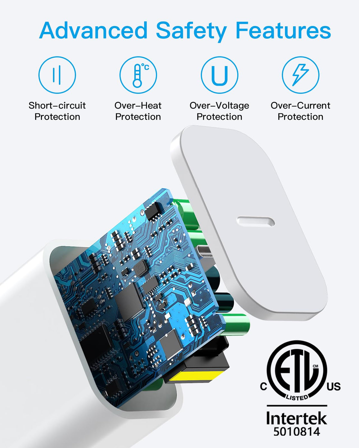 Q: Is the AISNI 20W charger safe to use with my iPhone?A: Yes, the AISNI 20W charger features multiple safeguards that protect your device from over-current, over-voltage, over-heating, and short-circuiting, ensuring safe and reliable charging.
