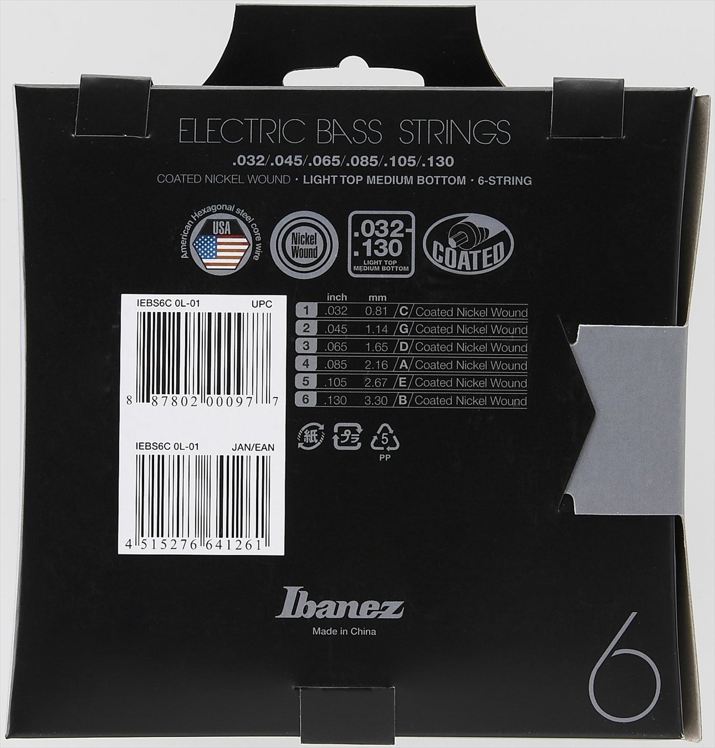 The Ibanez Bass Guitar Strings Are Nickel Wound And Are Available In A 6 String / Light Top Medium Bottom Set. The Gauges Are As Follows: .032 / .045 / .065 / .085 / .105 / .130