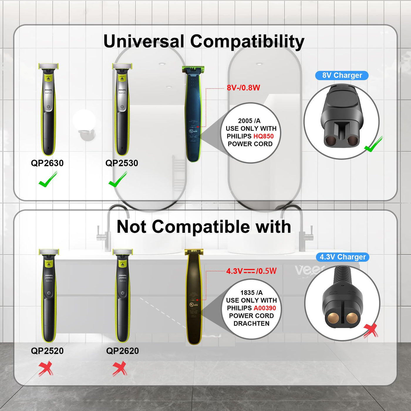 Iberls For Philips Hq850 Power Cord For Oneblade Qp2630 Qp2530 Shaver, Replacement Charger 8V / 0.8W, Compatible With Philips Ra