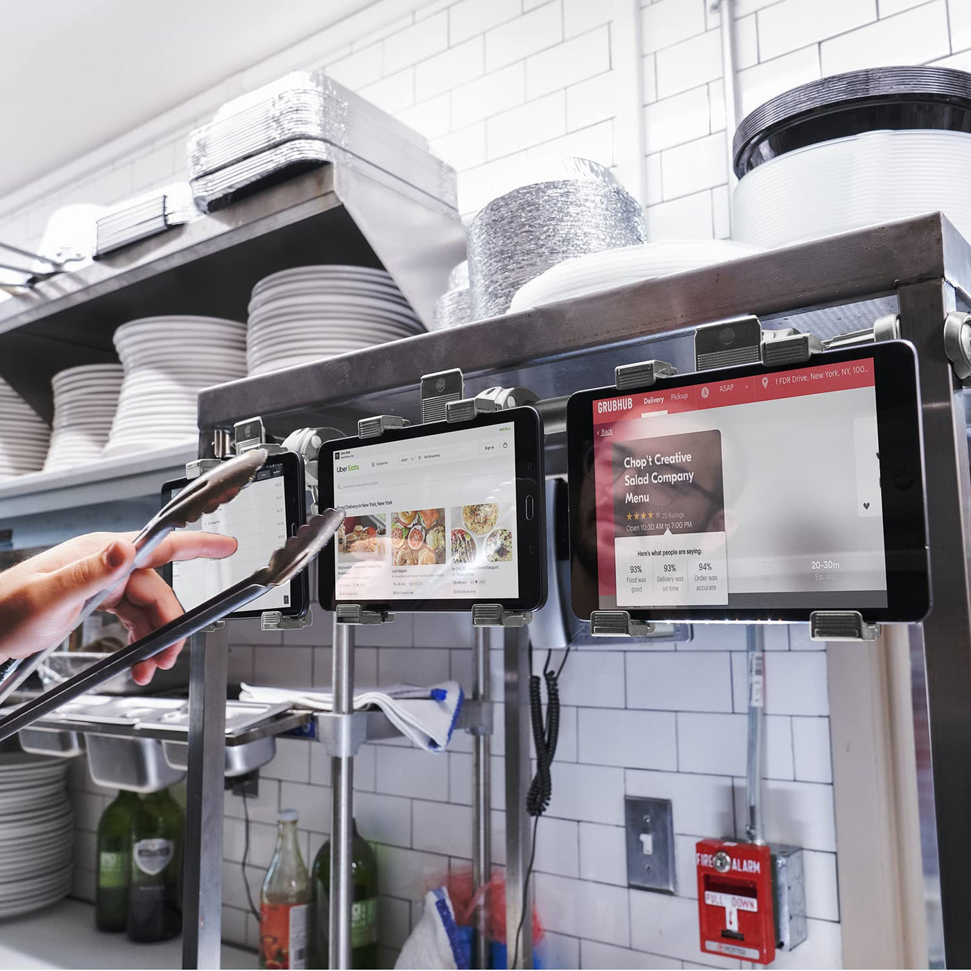 Heavy Duty - The Tabdock Point Of Purchase Is A Heavy Duty Point Of Sale / Point Of Purchase Mount For All 7- 10 Inch Tablets. It Is Designed To Clamp Directly On A Table, Countertop, Desk, Or Any Flat Surface Or Pole/ Post. The Tabdock Point Of Purchase Mount Allows You To Mount Your Tablet Where You Need It Most. Sturdy- Has For Points Of Contact For Each Tablet Holder For A Secure Hold. This Point Of Sale Tablet Mount Features 3 Tablet Holders That Are Perfect For Running Delivery Applications, Such As, Doordash, Uber Eats, Postmates, Yelp, Etc. Designed For Point Of Sale - Fits All 7 To 10 Inch Tablets In An Easy To View Position (Compatible With Ipad Pro 10.5 Inch / 9.7 Inch, Ipad 7, 6, 5 ,4, 3, 2, Ipad Original, Ipad Air 2, Ipad Air Samsung Galaxy Tab A, Etc.). This Kit Includes A C-Clamp Extendable Mount, And 3 Tablet Mounts. Great For Business Or Personal Use - Works With Most Smooth Surfaces, Perfect For Desks, Countertops, Tables And More. The Pole Expands From 17.5 Tall To 28.5 Tall And The Clamp Adjusts To Fit Flat Surfaces Up To 2.5 Wide.. The Tabdock Point Of Purchase Is Great For Business, Homes, Point Of Sale Location, Kiosk Stands, Displays. Adjustable - Each Tablet Holder Rotates 360 Degrees For Optimal Viewing Positions. Insert Tablet Into Holders Horizontally And Then Rotate To Desired Viewing Position. Clamps Your Tablet In A Secure Hold, But Is Easy To Remove As Needed.