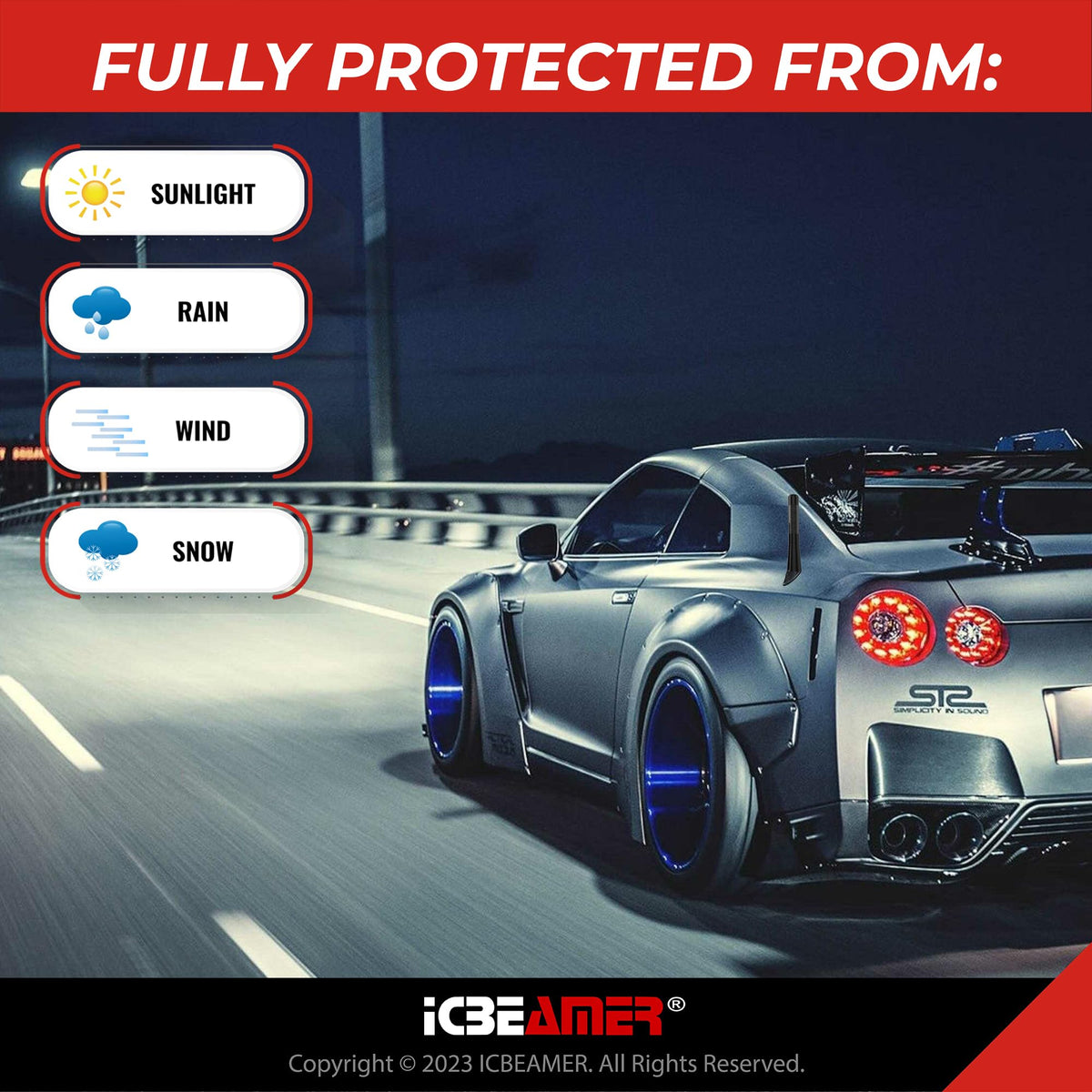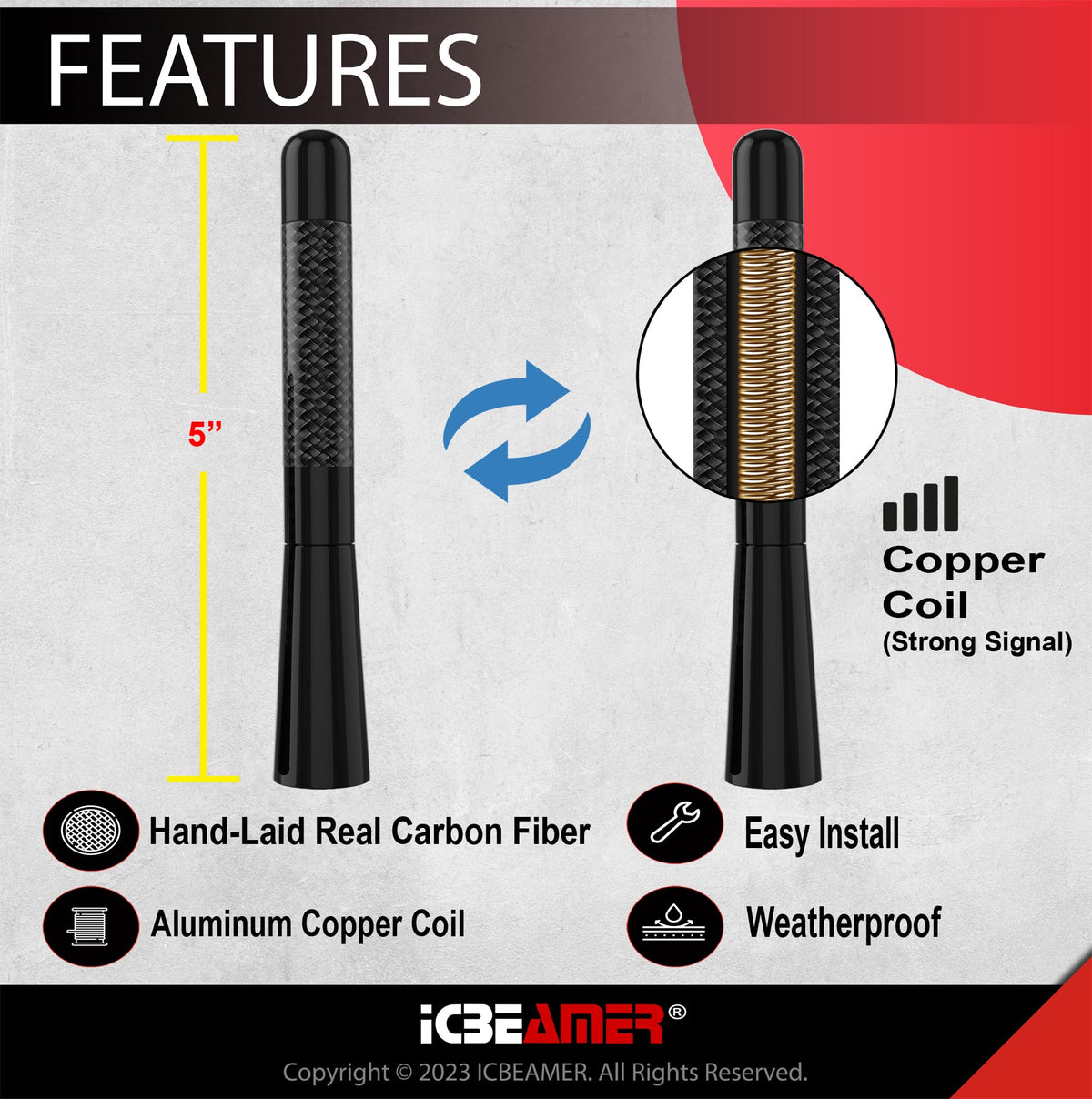 Icbeamer 5'' 127Mm Carbon Fiber Polished Finish & Matte Black Aluminum Short Automotive Antenna With Internal Copper Coil Univer