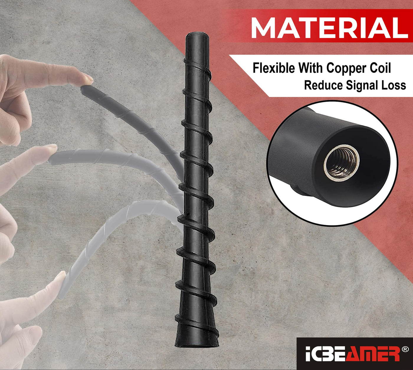 Icbeamer 7' Matte Black Spiral Flexible Rubber Antenna Universal Fit For Trucks, Cars, Suvs Metal Copper Interior, Steel Coil, Car Wash Safe Replacement Antenna [1Pc Pack]