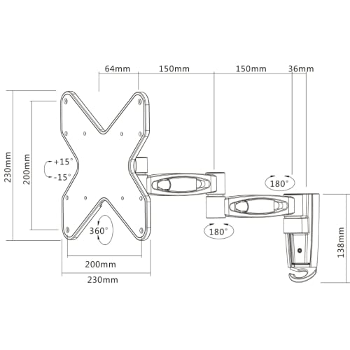 Q: How does the tilt and swivel feature enhance my viewing experience?A: This wall mount offers a ±15-degree tilt and a 180-degree swivel, allowing you to adjust your TV for optimal viewing angles from various positions in the room, enhancing your overall viewing experience.