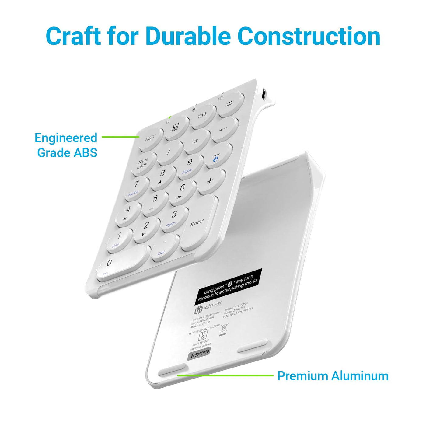 Iclever Bluetooth Number Pad, Kp08 Wireless Number Pad, Ultra Slim And Lightweight, Usb C Charge, 10 Key Numpad For Data Entry,