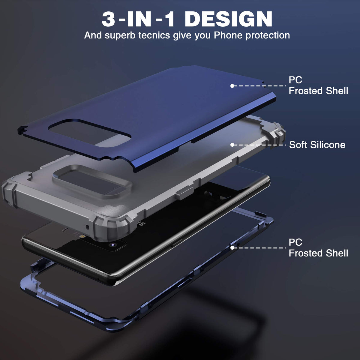 Idweel Galaxy Note 8 Case, Note 8 Case Blue For Men, 3 In 1 Shockproof Slim Hybrid Heavy Duty Protection Hard Pc Cover Soft Sili