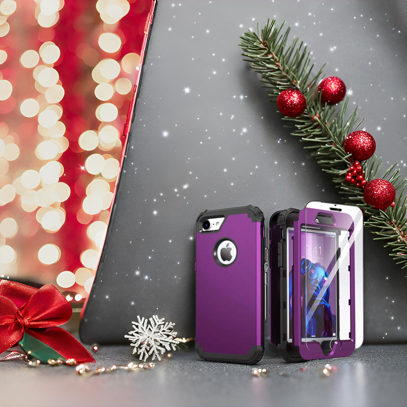 Idweel Iphone 8 Case, Iphone 7 Case With Tempered Glass Screen Protector, 3 In 1 Shock Absorption Durable Heavy Duty Duty Hard P